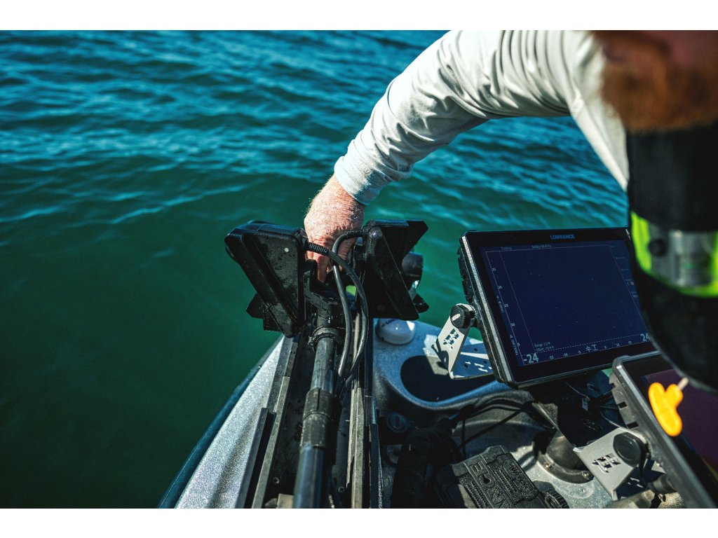 Nový držák – který lze namontovat na hřídel nebo na motor** – rovněž umožňuje rychlejší a snazší přepnutí do režimu Scout. Po aktivaci tohoto režimu vám rychlé značky pomohou zvolit správný úhel pro hlubokou či mělčí vodu. Díky tomuto jednoduchému řešení je přepínání mezi režimy sonaru snadné a efektivní.