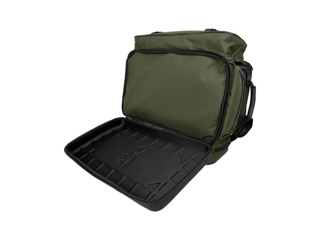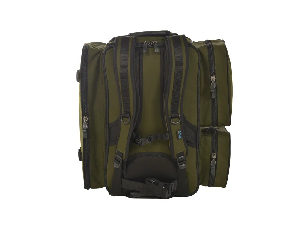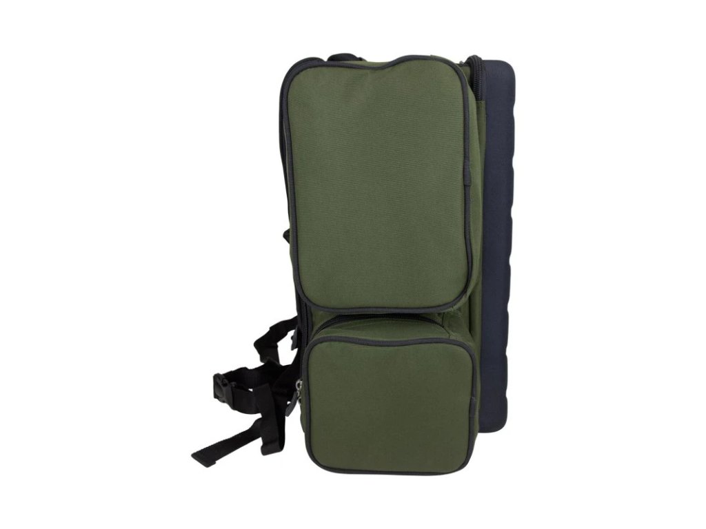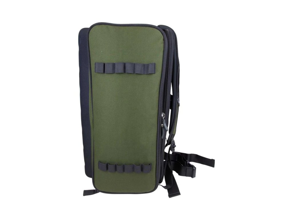Deluxe Roving Ruksack Black Series je jedním z nejlepších a nejžádanějších batohů na trhu. Pohodlné ergonomicky tvarované popruhy a rukojeti, do dlouhé kapsy byla přidána odnímatelná oddělovací přepážka a na vnějšku naleznete elastické úchyty na vidličky. Skládací přehoz z Aquatexxu chrání Vaše vybavení před vlhkostí při přepravě a samozřejmě, když jste u vody. Do robustní podstavy je implementována kapsa na zip, která poskytuje ještě více možností organizace vybavení. Vlastnosti produktu látka Endura popruhy na základně pro podložku nebo bivak Atom pevný, vyvýšený stoleček vypouklá EVA základna s kapsou na zip skládací přehoz proti dešti z Aquatexxu úchyty na vidličky na dlouhé kapse polstrovaná přepážka v dlouhé kapse masivní zipy úzký profil pro pohodlné nošení hodí se i na kolečko, protože všechny popruhy jsou na horní části úzký profil, který umožňuje batoh zasunout pod lehátko pohodlné popruhy přes ramena se třemi body uchycení 3× vnější kapsa 2× vnitřní kapsa ze síťoviny 1× vnitřní kapsa na zip 2× odnímatelné pouzdra Technické specifikace Rozměry: 58 × 30 × 49cmDoplňkové parametry