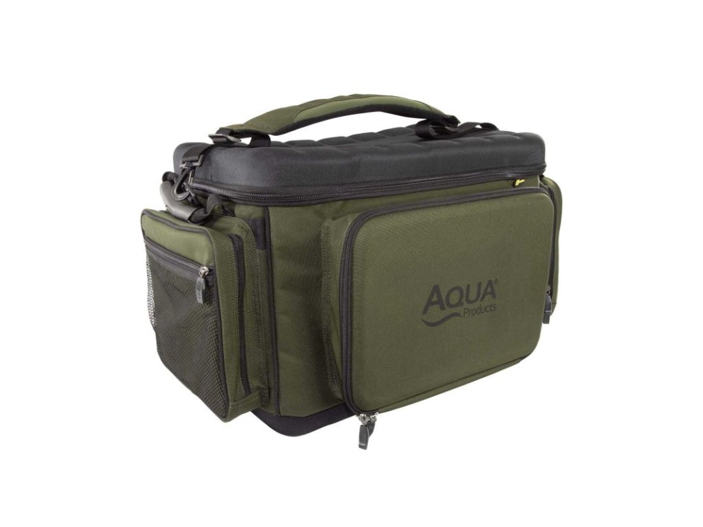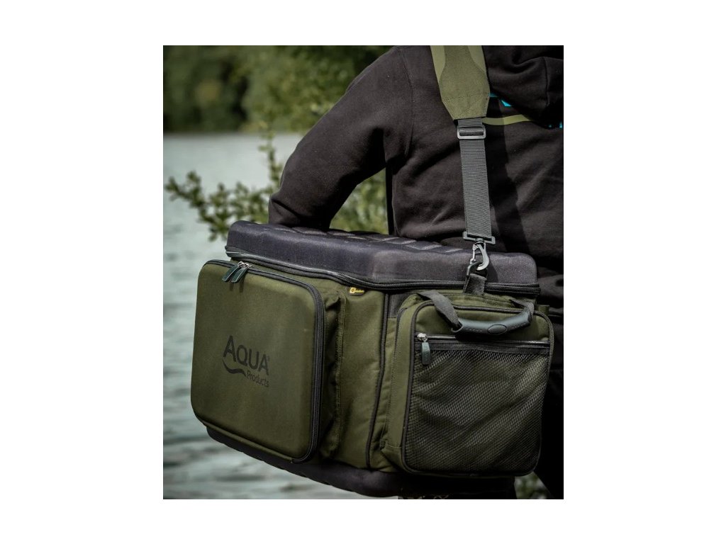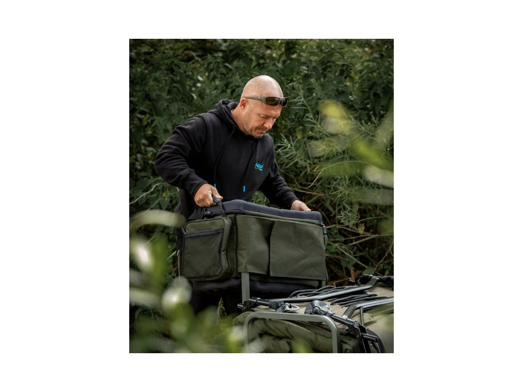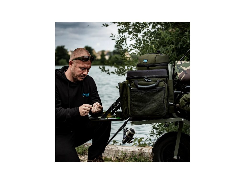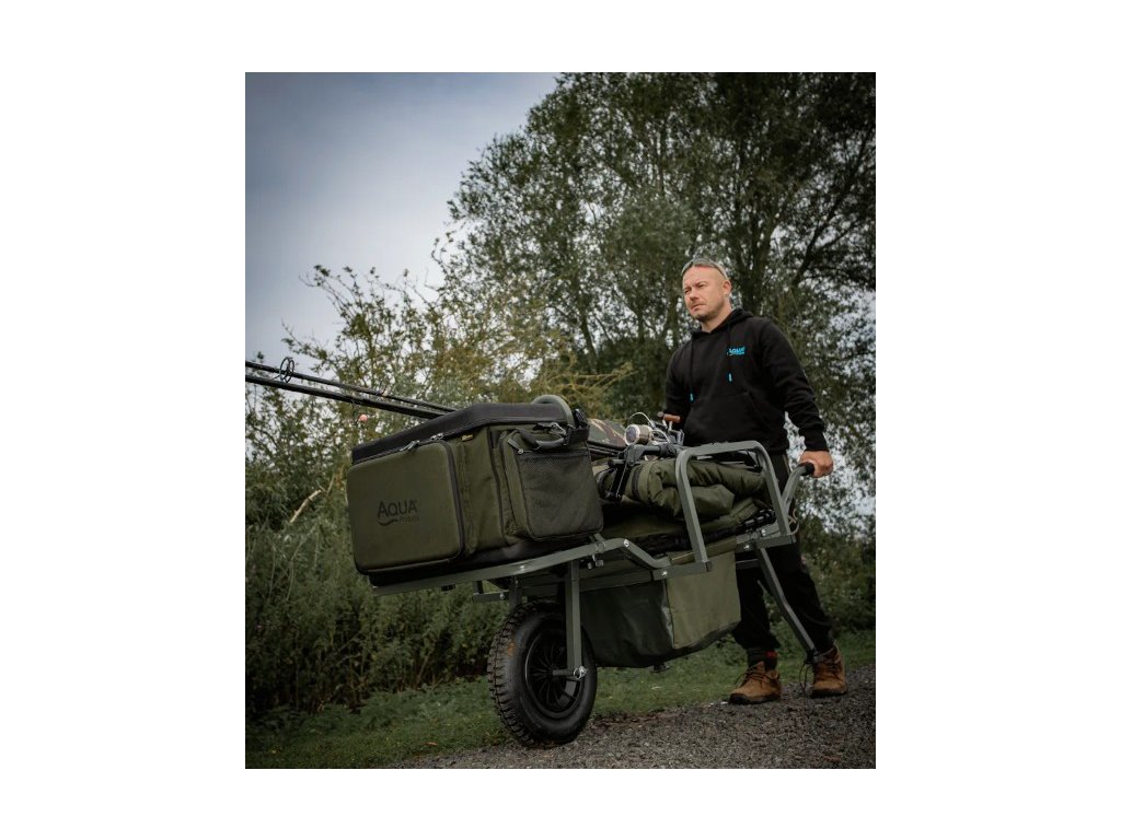 Taška na transportní vozíky od společnosti Aqua – Front Barrow Bag Black Series byla navržena tak, aby pasovala na většinu vozíků na trhu.