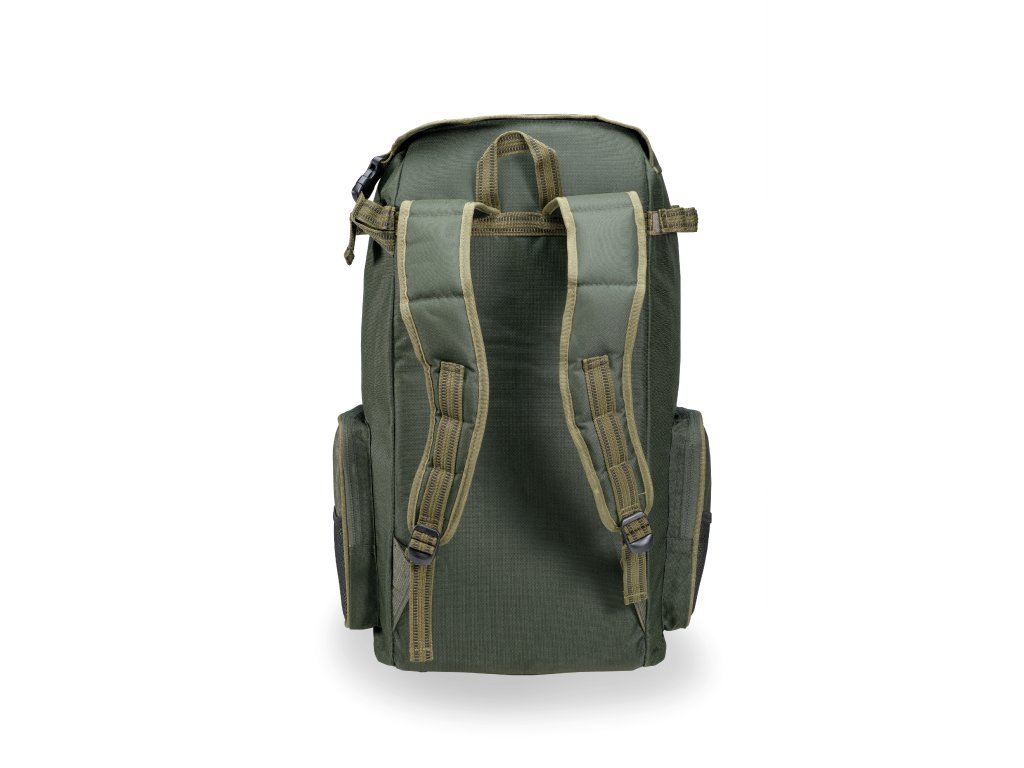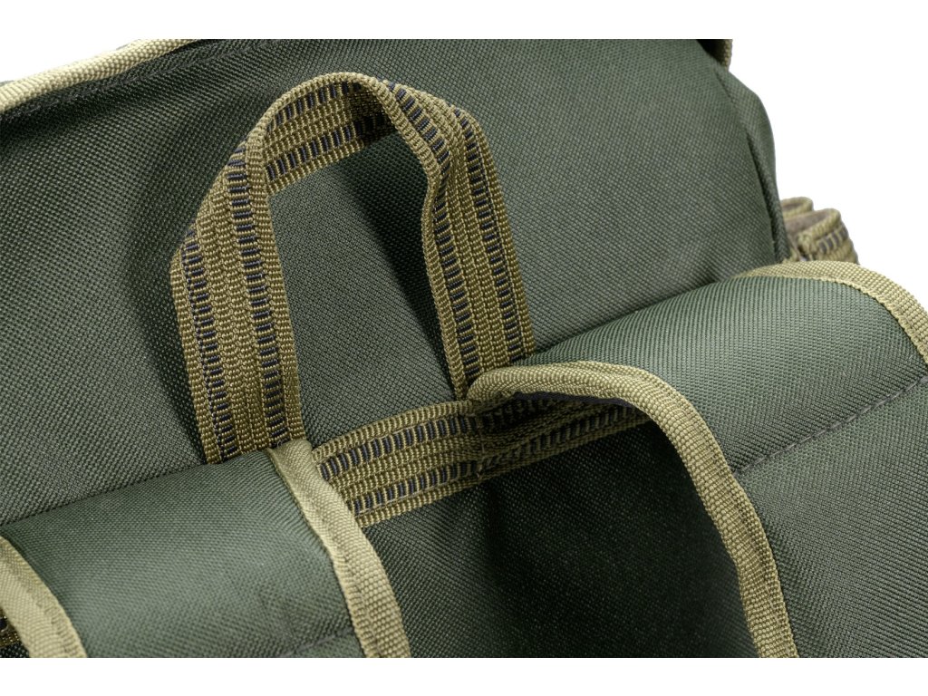 Populární řada rybářských batohů s unikátní konstrukcí, vyvinutou v ČR. Umožňující pře-pravu složených teleskopických prutů s navijáky. Batohy jsou vyrobeny z extrémně odolného a 100% nepromokavého materiálu B POL635D. Nabízejí pět vnějších kapes a praktické boční pásky pro upevnění rybářských doplňků. Jsou vybaveny speciálními anatomicky tvarovanými popruhy s komfortním polstrováním a kvalitními zipy bránícími protékání vody, osazenými luxusními táhly MIVARDI.Vnitřní rozměr: 58 x 31 x 21 cm