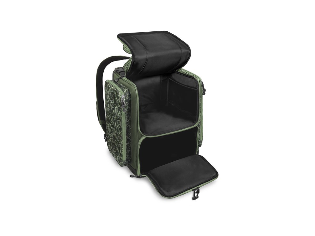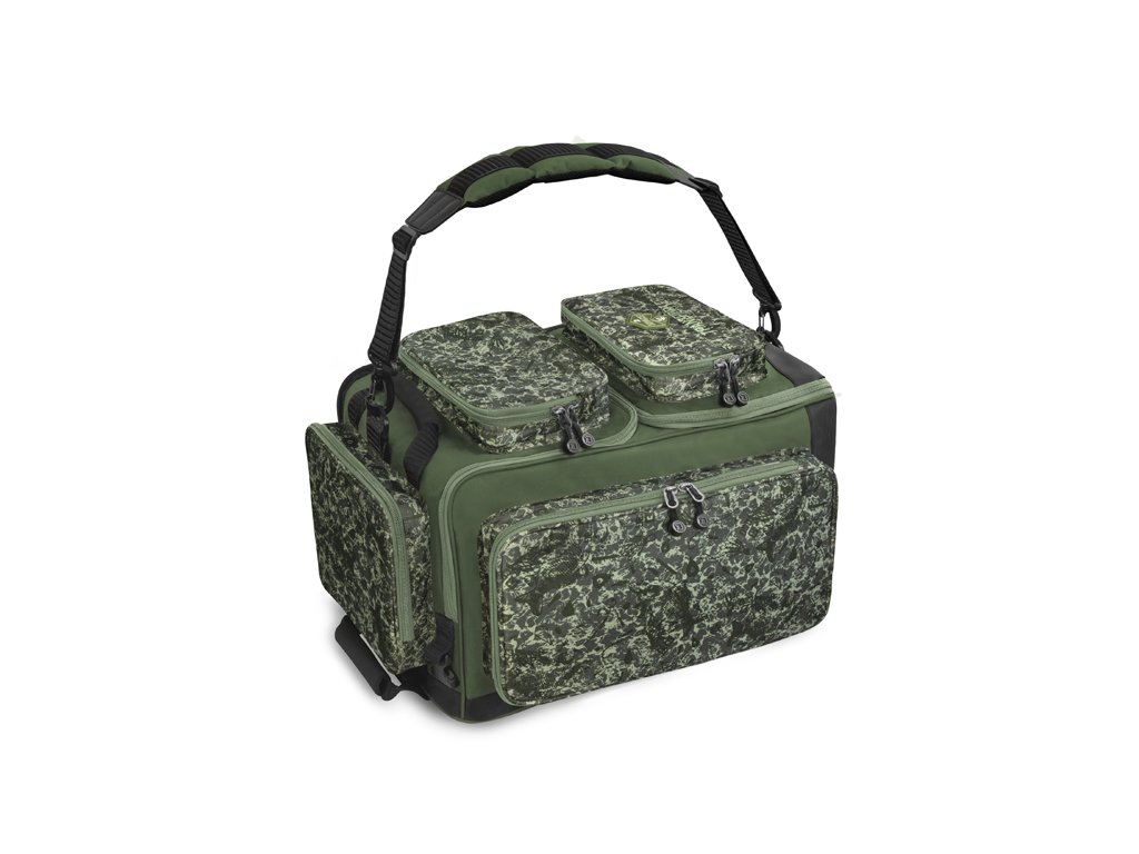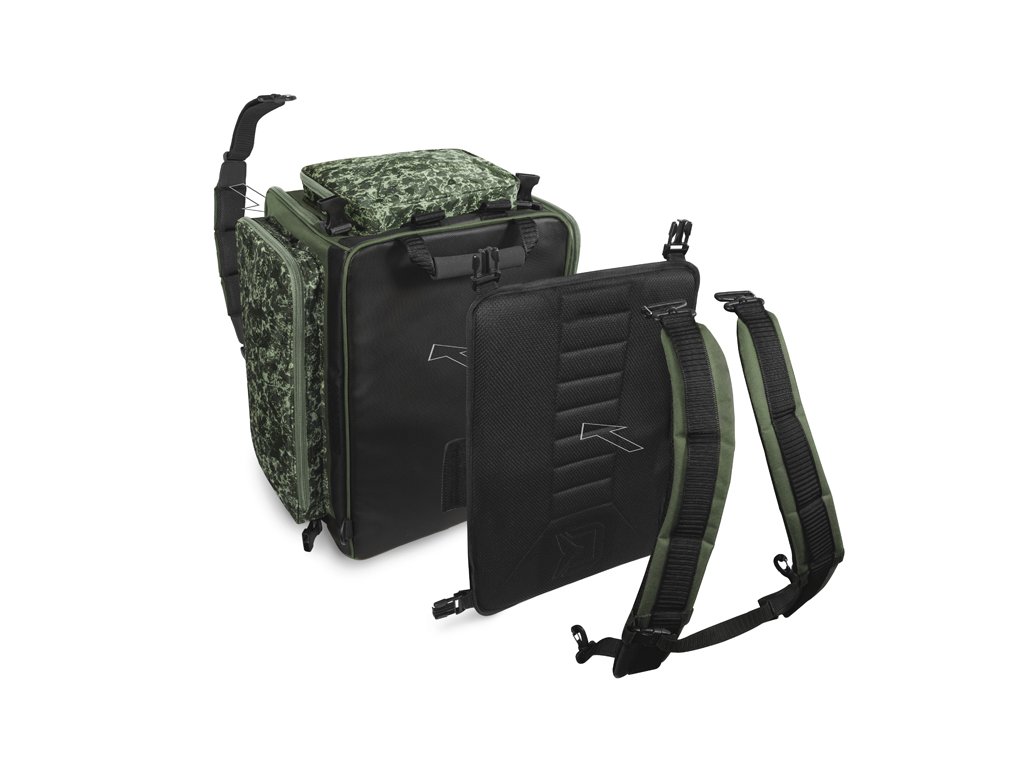 Delphin SPACE je označení pro exkluzivní sérii tašek z dílny značky Delphin. Vyznačuje se špičkovým zpracováním, kvalitními zipy, ale zejména výjimečným designem s použitím C2G kamufláže. Produkty dva v jednom jsou ve většině nepoužitelné, právě proto se jim obloukem vyhýbáme. Výjimku může tvořit jen produkt, který v obou funkcích exceluje. A právě to je TRANZPORTER. Volejte ho plnohodnotný batoh! Říkejte mu plnohodnotná carryall taška na rameno! Pravda je taková, že ve skutečnosti je to plnohodnotný průnik obou těchto modelů v jednom designu! Do nejmenších detailů propracovaný produkt, na kterém jsme si při vývoji dali opravdu záležet. Jeho objem 55 litrů umožňuje sbalit opravdu vše, co při svých expedicích potřebujete. Pokud svou výbavu potřebujete přenést na větší vzdálenosti, jednoduše ho díky ramenním popruhům použijete jako batoh, přičemž o pohodlí vašich zad se postará měkčená odnímatelná výztuha. Právě slovo odnímatelná je podstatné. Standardem u produktů 2v1 totiž bývá, že dosedací plocha zad batohu a dosedací plocha carryall tašky je stejná. To znamená 2 nevýhody. První je špína, kterou si po použití carryall tašky určitě nechcete dát na záda. Druhou je slabá ergonomie této společné plochy. My jsme to ale vyřešili. Hřbet je možné opatřit speciální vrstvou, která ochrání Vaše záda od nečistot a zároveň dopřeje pohodlí páteři. V případě potřeby tuto vrstvu odpojíte, spolu s ní i ramenní popruhy a na světě je najednou plnohodnotná taška přes rameno. Na její spodní části je vrstva snadno čistitelné PVC, která je 100% voděodolná, a tak ji můžete bez starostí položit kdekoli na zem. Další výhodou je úchyt opatřený EVA rukojetí, díky kterému je možné TRANSPORTER bez obtíží zasouvat a vytahovat z pod lehátka. Navzdory své velikosti vám tak v bivaku nezabere další místo navíc. Uvnitř batohu / tašky se nachází odepínatelná přihrádka, která umožňuje v případě potřeby předělit vnitřní prostor na dvě části. Vy si tak můžete své věci uspořádat opravdu přehledně, případně si snadno oddělíte např. jídlo a oblečení od rybářských potřeb. K dokonalému pořádku a uložení věcí napomáhají i velké kapsy umístěné po bocích a vepředu opatřené kvalitními zipy s praktickým Delphin úchopem. Vstup do hlavní části TRANZPORTER-a umožňuje velký otvor přecházející z vrchní až do přední části a také druhý otvor na přední straně. Díky nim bez problémů dovnitř uložíte vše potřebné pro vaše výpravy, které se s TRANZPORTER-em stanou mnohem pohodlnější. Unikátní CARPATH design některých částí už jen efektivně podtrhuje jedinečnost tohoto skvělého produktu. Technické parametry: Celkový rozměr včetně kapes ŠxVxH: 45cm x 50cm x 40cm Rozměr hlavní části batohu ŠxVxH: 30cm x 45cm x 30cm Rozměr přední kapsy ŠxVxH: 24cm x 16cm x 5cm Rozměr boční kapsy ŠxVxH: 39cm x 20cm x 5cm Stylová patentovaná kamufláž z dílny značky Delphin pod označením C2G má mnoho podob a úhlů pohledu. Přesně tak i její název, který můžeme volně přeložit jako Carpath 2. generace, což přímo odkazuje na jejího předchůdce, ale můžeme ho číst i jako Carpath to Green, tedy přechod myšlenky Carpathu do zelené barvy. Její jedinečnost a nezaměnitelnost spočívá v prvcích, ze kterých je vytvořena. Na první dojem jde o kamufláž tvořenou třemi různými odstíny zelené. Všechno se však změní při detailnějším pohledu, kdy si všimnete siluety kaprů, komponentů kaprařské montáže a log značky Delphin spolu s označením C2G. Díky tomuto neopakovatelnému provedení se vaše rybářská výbava okamžitě stane jedinečnou a maximálně originální.