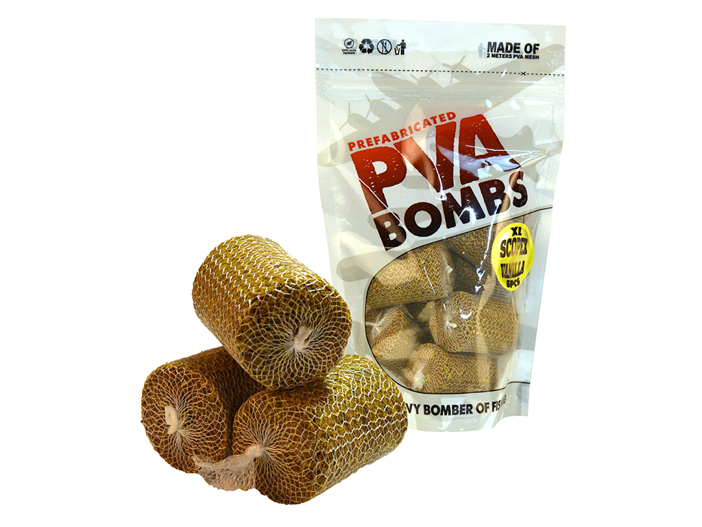V balení se nachází 20 ks nábojů, které díky speciálnímu procesu výroby po dosáhnutí dna okamžitě vybouchnou do okolí nástrahy. Pomocí nich dosáhneme precizní vábivou sílu bez toho, abychom museli na břehu naplňovat PVA síťku, která bývá náchylná na poškození. Za každým sáčkem se ukrývají roky závodního rybaření, několik tisíc hodin strávených na vodním břehu. PVA BOMBS přizpůsobené speciálním podmínkám jsou dostupné v 5 různých příchutích, proto je můžeme úspěšně použít v každé situaci. Můžeme je ještě vylepšit dipem nepoškozujícím PVA. Každý produkt obsahuje kvalitní směs - krmivo a přidané aminokyseliny, na omega 3 mastné kyseliny bohatý rybí olej a esenciální oleje.