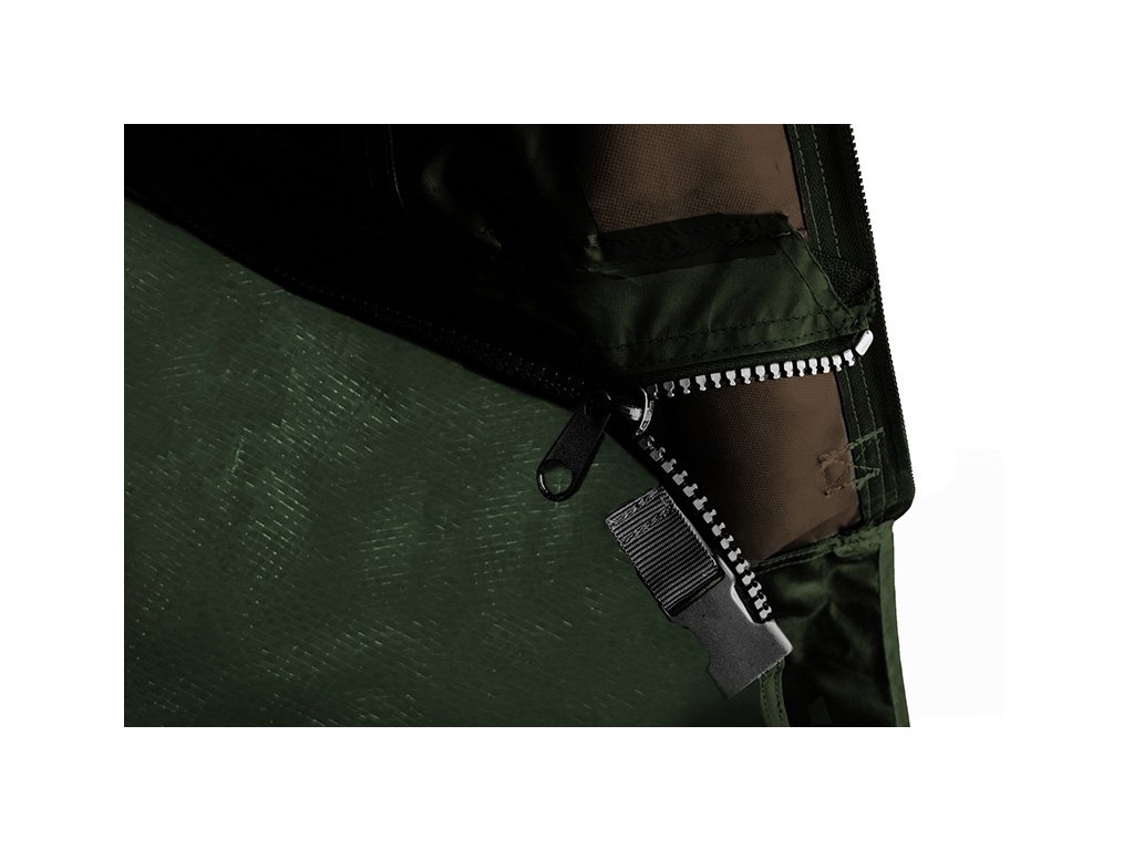 Vlajková loď v segmentu bivaků od společnosti Delphin. To je bivak C-3 LUX CARPATH, který je určen těm nejnáročnějším rybářům mezi námi. Extra pevná garážová konstrukce se třemi žebry zaručuje nekompromisní stabilitu v jakýchkoliv povětrnostních podmínkách. Spolu s použitou látkou nejvyšší kvality a kompletně podlepenými švy odolá i silným bouřím, větru a vydatnému množství srážek. Nespornou předností bivaku je látka s oblíbeným vzorem CARPATH, což určitě nadchne všechny příznivce této originální kamufláže. Díky rozměrům bivaku se do něj bez problémů vejdou 2 lehátka, přičemž stále zůstane uvnitř velkorysý prostor pro pohyb, ale také na tašky a další komponenty výbavy potřebné pro pohodlný pobyt u vody. V případě potřeby pojme vnitřní prostor dokonce až 3 lehátka. Samozřejmostí jsou také dva úchyty na zafixování prutů, ale také velký kšilt, který poskytuje ochranu před sluncem či deštěm. Uvnitř jsou na stropě bivaku navíc umístěny 2 háčky, na které je možné zavěsit například lampu. Bivak C-3 disponuje inovativním systémem CLIMA CONTROL, který byl navržen designérským oddělením značky Delphin. Tento systém je tvořen dvěma větráky na protilehlých stranách (nad vstupními dveřmi a nad zadním oknem). Díky tomuto důmyslnému systému lze zajistit cirkulaci vzduchu ve vnitřním prostoru bivaku v době, kdy není možné větrat pomocí velkých oken. Určitě ho oceníte zejména v noci, kdy výrazně napomáhá snižovat kondenzaci na vnitřních stěnách. Celý systém je navíc jednoduše ovladatelný zevnitř bivaku. K bivaku C-3 je možné dokoupit sadu předních plastových překrytí oken (které jsou standardně moskytiérové s látkovým překrytím), v transparentním provedení. Také je možnost zakoupení přehozu, který zvýší tepelný odpor, a tím i izolační vlastnosti samotného pláště. Bivak má v balení automaticky základní podlahu, která je fixována kvalitním zipem po celém obvodu bivaku. Odteď nehrozí nechtěné návštěvy hlodavců, či nečistoty pronikající do bivaků! C-3 LUX CARPATH je bivak bez kompromisů, který uspokojí i ty nejnáročnější rybáře a díky kterému bude každý pobyt u vody maximálně komfortní. Technické parametry: Vnější rozměr: 300x320x175cm Výška bivaku: 175cm Délka kšiltu: 60cm Transp. rozměry bivaku: 130x30x30cm Hmotnost bivaku: 13kg Transp. rozměry přehozu: 60x20x20cm Hmotnost přehozu: 4kgDoplňkové parametry