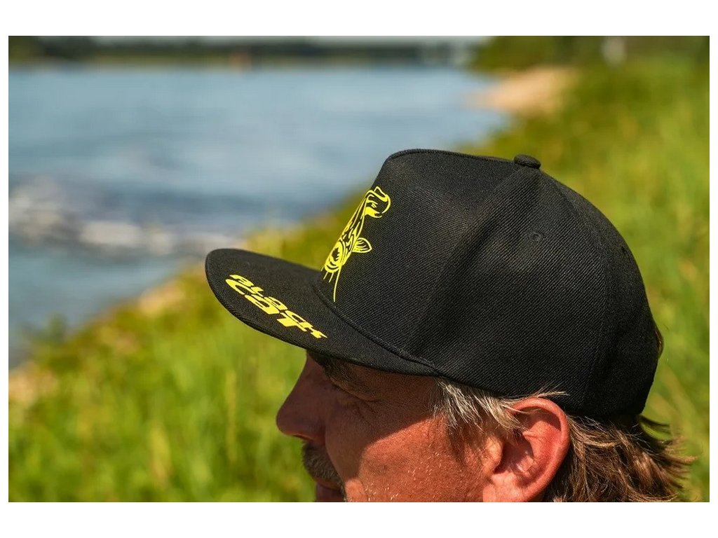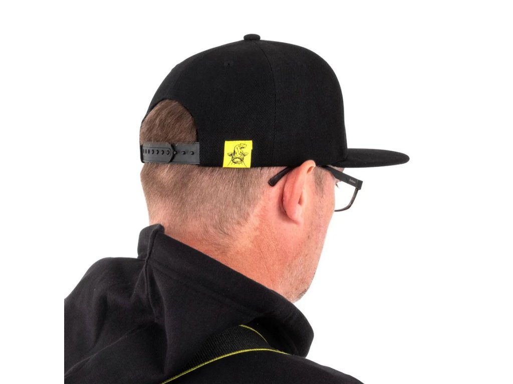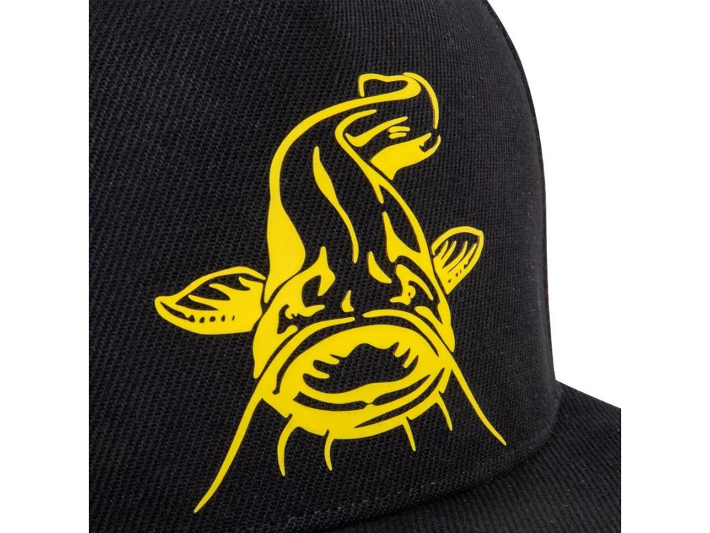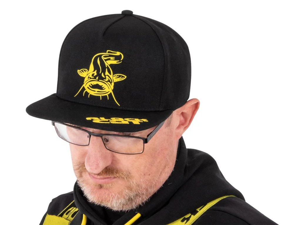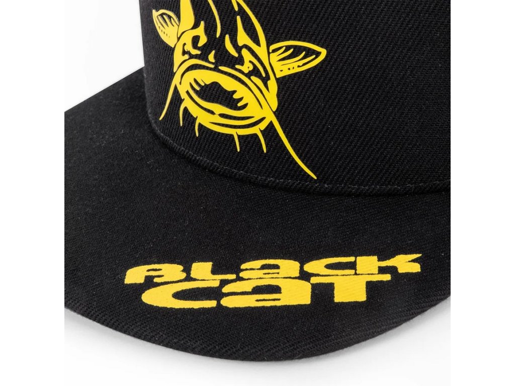 Černá kšiltovka Black Cat s plochým kšiltem.
