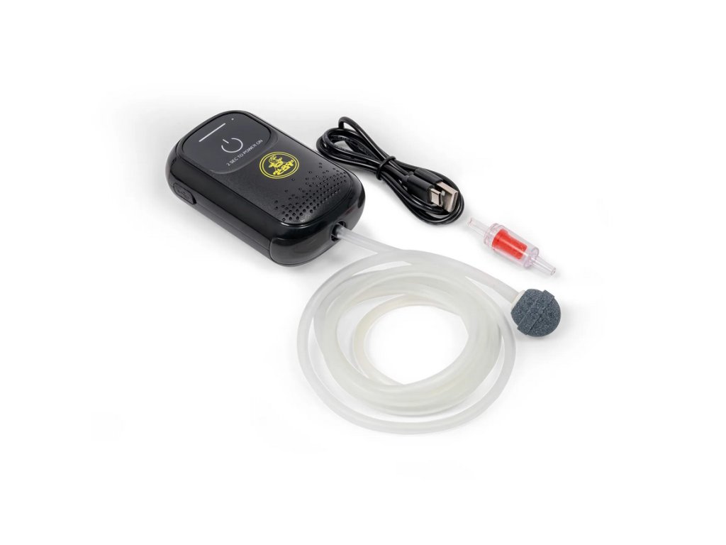 Obsah balení: dlouhá vzduchovací hadice, vzduchovací kámen a nabíjecí kabel.
