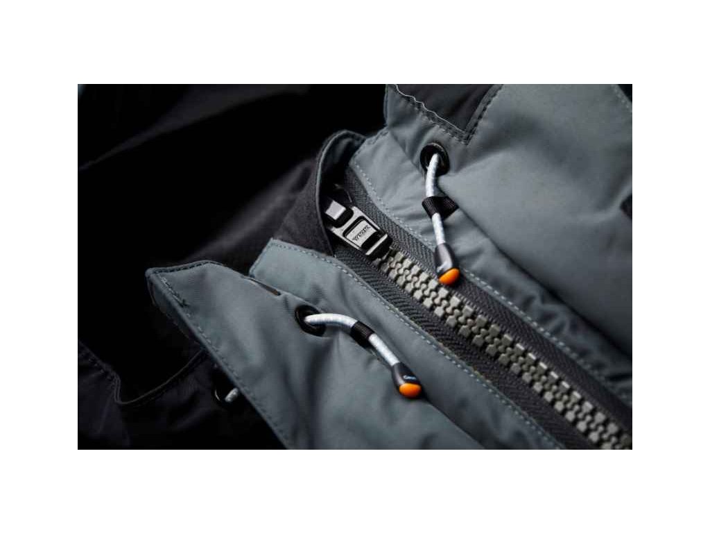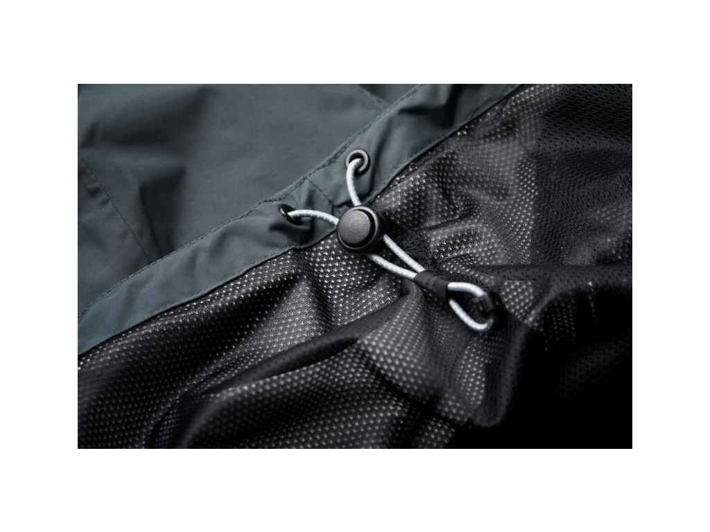 Vynikající hydroizolační, prodyšnost a odrazové schopnosti tepla. Tkanina umožňuje odvést přebytečné teplo a odpařit vlhkost, přičemž máte stálý pocit sucha a pohodlí. Kapuce je tvarovatelná s pevným kšiltem. Elastický nastavitelný systém vám umožňuje přizpůsobit kapuci přesně na vaši hlavu, i když nosíte kšiltovku. Individuální díly jsou certifikovány ECO-TEX.