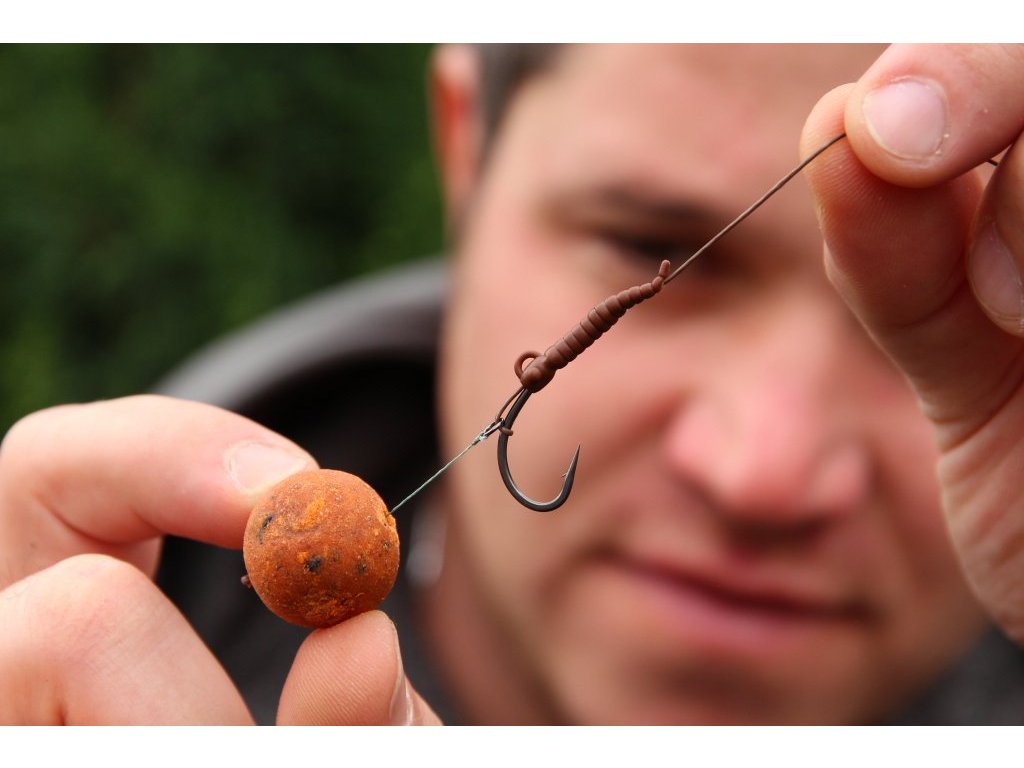 Doporučujeme 3 až 4 cm nad konec Mouthsnaggeru přidat náš olověný broček Camo Shot (ideálně 0,9 g). Nebo použít trochu plastického olova Tungsten Putty. Zátěžový broček pomáhá se správným přetáčením háčku do spodního pysku ryby.