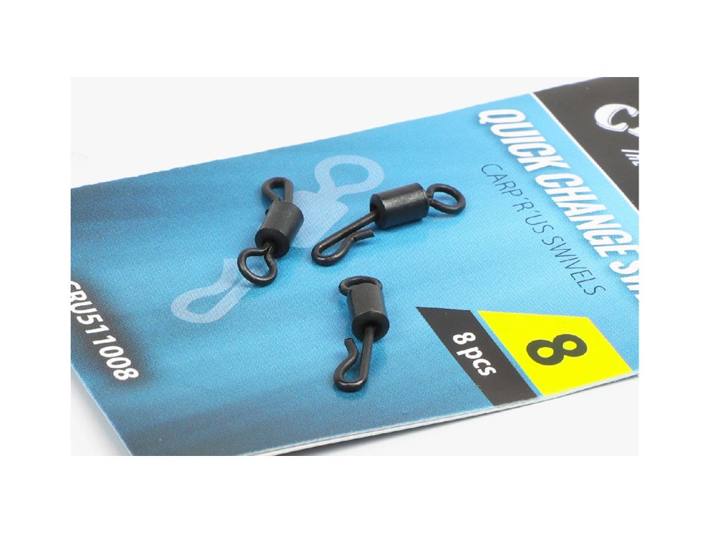 Klasické rychlovýměnné obratlíky pro tu nejefektivnější prezentaci s jakýmkoliv materiálem. Pro tuhé materiály jako je třeba Clearwater Fluorocarbon však přeci jen doporučujeme obratlíky Quick Change Ring Swivel. Pro správnou funkci systému je nutné použití s převlekem Antitangle Sleeve v každé situaci, ne jen pro nahazování do velké vzdálenosti. Technické parametry Velikost: 8 Balení: 8ksDoplňkové parametry