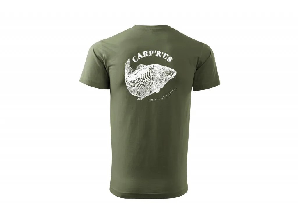 Stylové tričko v zelené barvě s logem Mouthsnagger na prsou a klasickým kaprem Carp´R´Us na zádech. Tato trika jsou vyrobena z velmi kvalitního a příjemného, bavlněného materiálu, který se skvěle nosí. Při správném praní nehrozí seprání či jakékoli poničení potisku na hrudi a zádech. Obrázek kapra na zádech není natištěný klasickou sítotiskovou technologií a díky tomu je triko příjemnější a nedochází v těchto místech k nadměrnému pocení. Technické parametry Materiál: 100% bavlna Jedná se o doprodej. Novější verzi trička (150g) naleznete zde.Doplňkové parametry