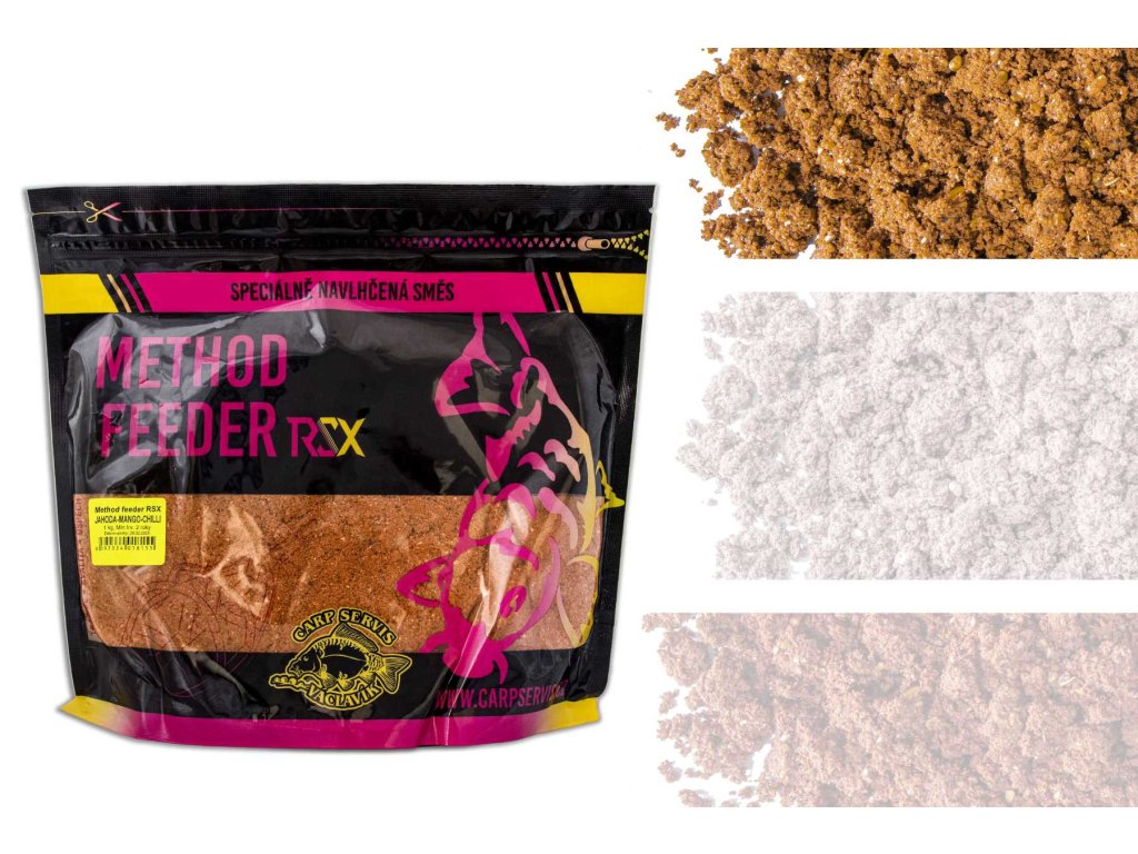 Naše Method Feederové směsi jsou v nabídce již několik let. Jejich obliba stoupá překvapivým způsobem a přesně toto byl důvod k postavení nové, modernější a především výkonnější směsi. Ta bude zajímat zejména fajnšmekry a závodníky. Method Feeder RSX se ve svém složení přibližuje spíše k nutričně nasyceným boilies, než klasickým směsím. Právě tato skutečnost je jedním z důvodů, jež radikálně zvyšuje atraktivitu. V tomto okamžiku jsou k dispozici tři varianty. Prvním je kombinace Jahoda/Mango/Čili. Prolnutí těchto tří dráždidel dává produktu naprosto jedinečnou formu, která vás bude jistě velmi bavit. Stejně jako u příchutě Satan se zde vzájemně doplňují živočišné enzymatické bílkoviny, extrémně intenzivní aromatické látky a pikantní chutě. Neodolatelná kombinace. Druhou je Satan, kde se využívá naší fenomenální kombinace atraktorů. Může se zdát, že varianta Satan nemusí být pro rychlý způsob rybolovu tou ideální formou, ovšem opak je pravdou. Celoročně atraktivní kombinace s výhodou v chladném období je přesnou charakteristikou. Třetí z produktu Mojito, můžeme charakterizovat specifickým vzezřením, jež vychází čistě z přírodních výtažku tropických plodů. Právě protože zde chemická dráždidla abstinují, je Mojito velmi atraktivní. Výrobce: CSV VideoDoplňkové parametry