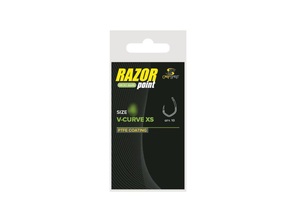 Háčky V-Curve jsou ihned rozeznatelné díky zřetelnému tvaru písmene 'V' v oblouku. Háčky V-Curve, jsou výbornou volbou pro lov velkých trofejních kaprů nebo rybaření v náročném terénu s překážkami. Zvláštní tvar výrazně redukuje pohyb háčku, protože veškerá tažná síla je soustředěna do středu oblouku. Proto také výrazně klesá pravděpodobnost jeho uvolnění v průběhu zdolávání ryby. Mimořádně široce otevřený oblouk, krátké raménko a dovnitř zahnutý háček výrazně zvyšují účinnost a zlepšují průnik. Háček s mikroprotihrotem je vyroben z uhlíkové oceli nejvyšší kvality a má matný teflonový povrch (PTFE).