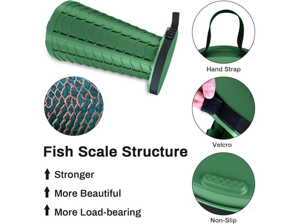 Portable Folding Stool – green je ideální volbou pro všechny, kdo hledají praktické, lehké a stabilní sedadlo s možností snadného přenášení a rychlého použití venku.