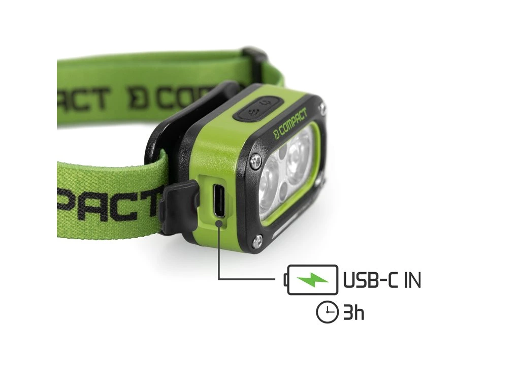 Tělo čelovky ukrývá zabudovanou 1200 mAh Li-ion baterii, kterou pohodlně nabijete pomocí USB-C kabelu. Plné nabití trvá přibližně 3 hodiny, přičemž o aktuálním stavu kapacity vás informuje integrovaný indikátor baterie.