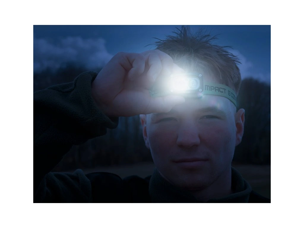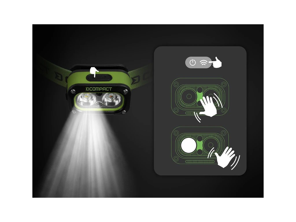 Čtvrtým stisknutím se spustí červená poziční dioda, která usnadňuje lokalizaci čelovky v naprosté tmě. V tomto režimu vydrží svítit až 24 hodin. Druhé tlačítko aktivuje pohybový senzor, díky kterému svítilnu zapnete nebo vypnete pouhým mávnutím ruky.