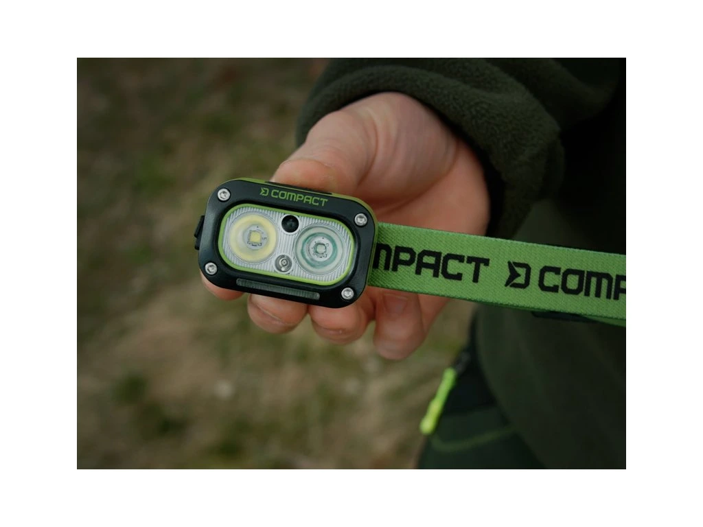 Jak již název napovídá, Delphin COMPACT představuje mimořádně kompaktní, nabíjecí čelovou lampu s nízkou hmotností, ale s vysokým výkonem a výdrží baterie. Ve výbavě nezabere téměř žádné místo a díky komfortnímu nošení budete mít pocit, že ji na hlavě ani necítíte. S výkonem 3 W a svítivostí 120 lumenů je ideální volbou pro všechny aktivity u vody či na toulkách přírodou.Na vrchní straně se nacházejí dvě tlačítka pro ovládání světelných režimů a pohybového senzoru. Čelovka disponuje dvěma hlavními LED diodami, které nabízejí bílé a zelené světlo. Po prvním stisknutí se rozsvítí bílé světlo v úsporném režimu (58 lm) s výdrží až 7 hodin. Následné kliknutí aktivuje maximální výkon (120 lm) s výdrží 3 hodiny.