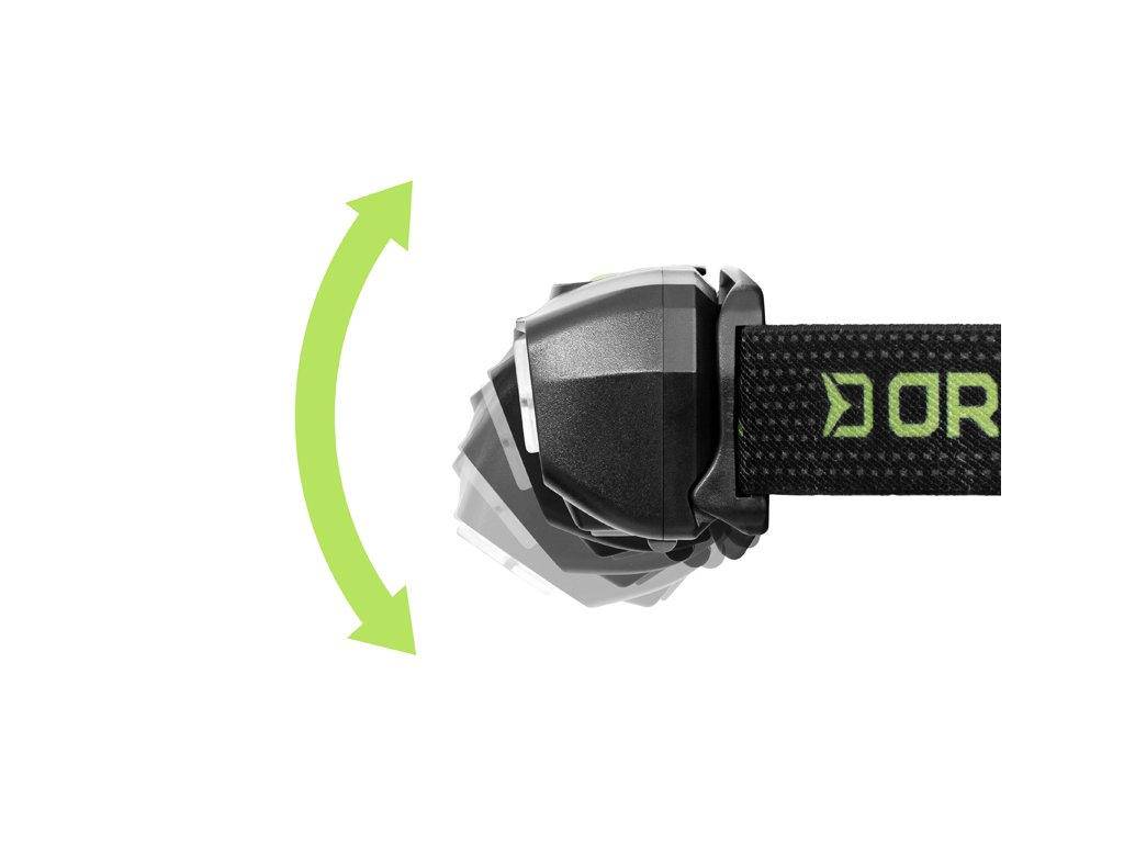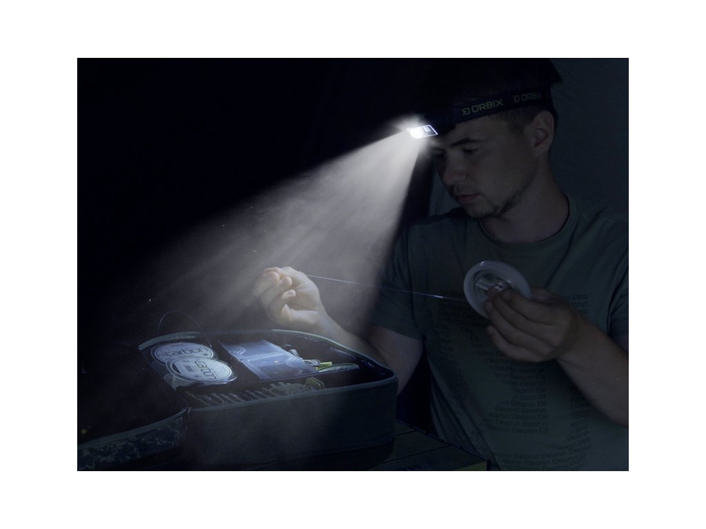 Čelovka disponuje výkonem 5 W a svítivostí až 350 lm, což zajišťuje dostatečné osvětlení vašeho okolí. Delphin ORBIX je vybavena pohybovým senzorem, díky kterému ji dokážete snadno vypnout a zapnout mávnutím ruky. Na čelovce se nacházejí dvě LED diody, které nabízejí možnost bílého nebo zeleného světla. Při prvním stisku spínacího tlačítka se rozsvítí bílé světlo o intenzitě 20 % (100lm), přičemž baterie vydrží 13h. Opakovaným stisknutím se aktivuje režim 50 % s výdrží 8 hodin, a třetím stisknutím se rozsvítí bílé světlo na 100 %, přičemž baterie vydrží 5 hodin. Čtvrtý a pátý stisk spustí LED diodu se zeleným světlem v intenzitě 50% (výdrž 11 hodin) a 100% (výdrž 7 hodin). Zelené světlo je výhodné při zdolávání ryb, protože ryby méně plaší a zároveň nepřitahuje otravný hmyz, což oceníte zejména během horkých letních večerů. Čelovka má v sobě zabudovanou 1200 mAh baterii, která se nabíjí prostřednictvím USB-C kabelu. Plné nabití trvá přibližně 4 hodiny. Na těle čelovky se nachází indikátor baterie, který zobrazuje aktuální stav nabití. Pro maximální flexibilitu je čelová lampa ORBIX osazena na pohyblivém kloubu, který umožňuje nastavení úhlu sklonu. Elastický, délkově nastavitelný popruh zajišťuje pohodlné nošení pro každého.