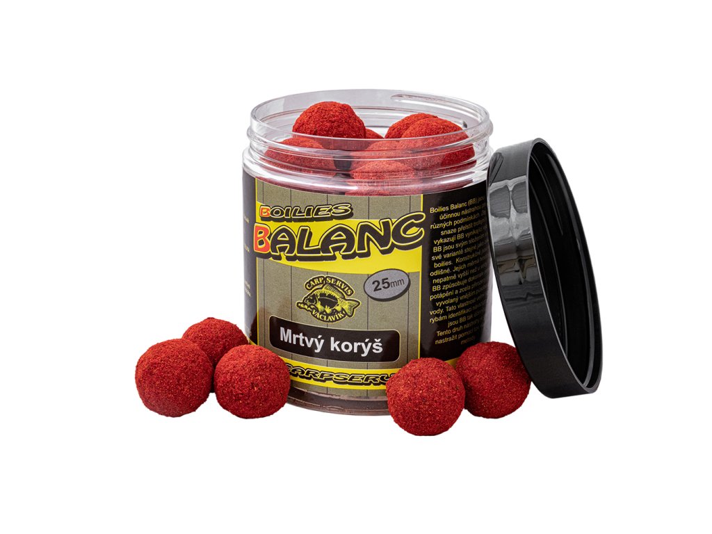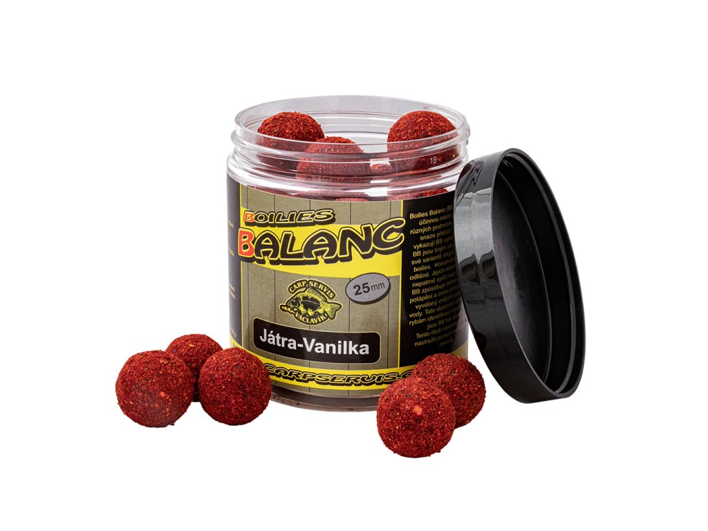 Boilies Balanc (BB) jsou nečekaně účinnou nástrahou pro lov v různých podmínkách. Zejména při snaze přelstít trofejní kusy, vykazují BB vynikající výsledky. BB jsou svým složením v každé své variantě stejné jako základní boilies. Konstrukčně jsou však odlišné. Jejich měrná hmotnost je nepatrně vyšší než u vody. To u BB způsobuje dokonale pomalé potápění a zcela přirozený pohyb vyvolaný vnějším působením vody. Tato vlastnost velmi stěžuje rybám identifikaci návazce. Proto jsou BB tak účinné. Účinnost této nástrahy je skryta i v dalších aspektech, které nejsou na první pohled zřetelně vidět. Co však vaše oko odhalí ihned, je speciální směs aktraktorů, pro každou variantu osobitě vlastní, nanesená na povrchu BB v tenké vrstvě.Ta se po vhození do vody rychle uvolní a dá této nástraze ještě vyšší atraktivitu, bez nutnosti dipování, či boosterování. Dipování a boosterování v tomto případě totiž není zcela žádoucí, protože BB se při masivnějším přijmutí tekutých atraktorů stane těžším a kouzlo vyvážené nástrahy se vytratí.Tento druh nástrahy je třeba nastražit pomocí tzv.vlasové metody. Výrobce: CSV VideoDoplňkové parametry