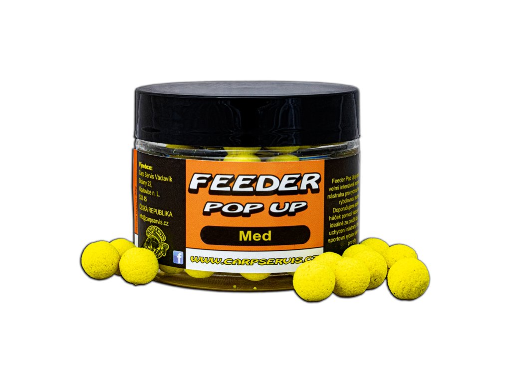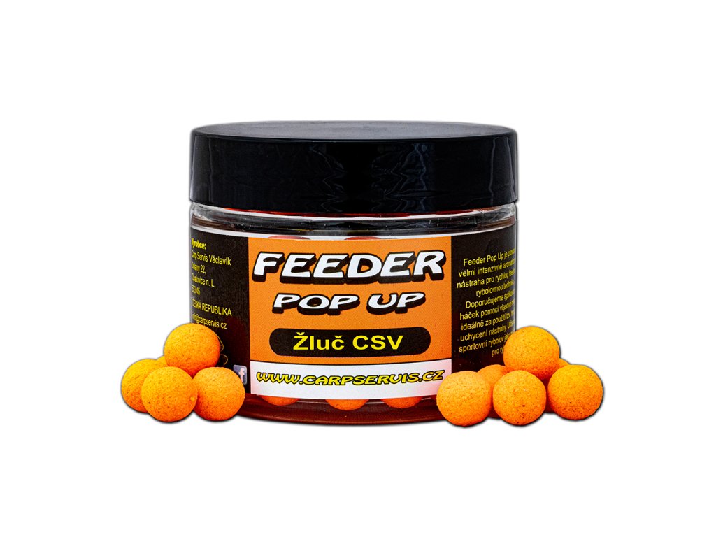 Feeder Pop Up přináší do rodiny feederových nástrah jednu ze zásadních dimenzí pro lov nadprůměrných kaprů pomocí této akční rybolovné techniky. Především tyto mini plovoucí nástrahy dokáží zaujmout kapitálního kapra. Zvolené aromatické varianty Feeder Pop Up patří mezi nejúspěšnější v naší nabídce. Teoreticky lze říci, že by bylo možné dát na jejich úspěšnost záruku. - Průměr: 9 mm - Balení : 30 g - Barva: oranžová Výrobce: CSVDoplňkové parametry
