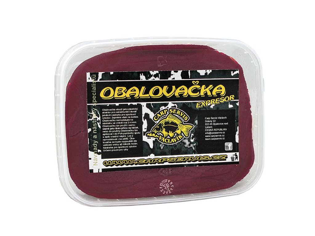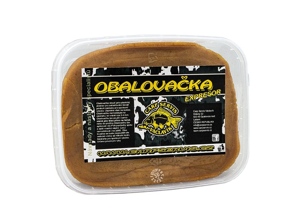 Obalovačka Expresor slouží jako plastický atraktor pro zatraktivnění téměř jakékoli nástrahy pro sportovní rybolov, zejména však na boilies Expresor, které svým zaměřením kopíruje. Obalovačku namodelujete na nástrahu ve vrstvě cca 24 mm. Obalovačka je nositelem nejen dráždivých pachů, ale zejména celé řady hmotných potravních signálů. Obalovačku lze použít i samostatně jako těsto přímo na háček nebo lépe do pružiny. Obalovačka se bude rozpouštět dle síly vrstvy až několik hodin. Jedná se o příchuť, která má niance masově kořeněné, které jsou v konečném vnímání přesyceny těžce sladkou vůní. Pokud se vám bude zdát obalovačka příliš tuhá, je možné pomocí pár kapek vody zpracovat malé množství obalovačky, které máte v plánu okamžitě použít, do správné konzistence. Výrobce: CSVDoplňkové parametry