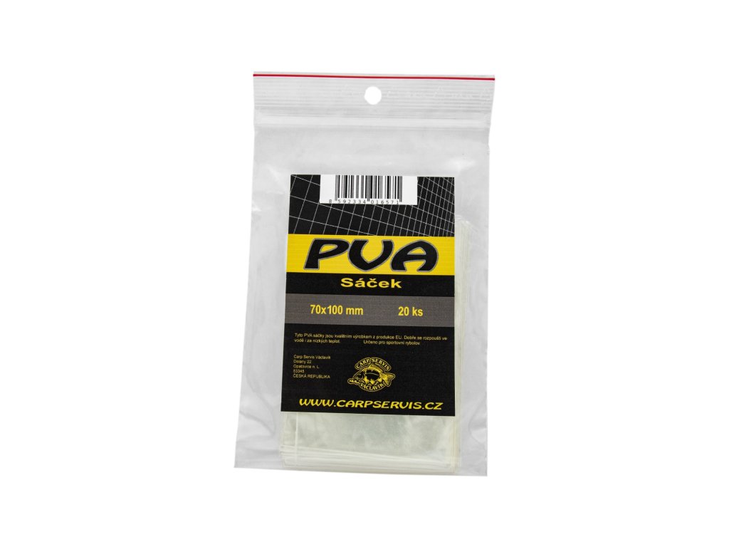 Naše PVA sáčky jsou vysoce kvalitním výrobkem z produkce EU. Rozpustnost je zaručená i v chladném období roku. V případech, kdy je potřeba rozpustnost PVA materiálů zpomalit, což zpravidla bývá při lovu ve velkých hloubkách nebo na průtočných vodách, doporučujeme naplněné sáčky ponořit do Boosteru nebo CSL Cornkiller. Tímto krokem se značně zpomalí rozpustnost PVA až na cca 2 min. a zároveň se značně zvýší atraktivita nástrahy. - Balení: 20 ks - Rozměr: 200 x 70 mm Výrobce: CSVDoplňkové parametry