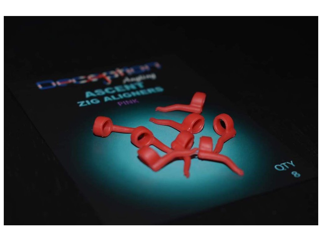 Zig alignery jsou navrženy tak, aby se snadno nasazovaly přes očko háčku při použití zig rig prezentace. Flexibilní a odolný materiál pevně drží zig pěnu nebo vámi vybranou plovoucí nástrahu. Unikátní design udržuje háček a nástrahu v jedné linii a poskytuje agresivní úhel zaklesnutí.