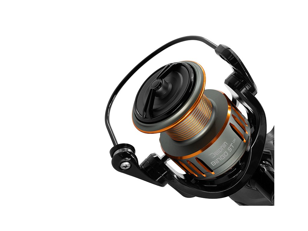 Univerzální naviják s volnoběžnou brzdou, který se skvěle hodí pro klasický lov kapra či dravých ryb na těžko. BINGO bezpochyby zaujme svým moderním designem v šedo-černé barvě s výraznými oranžovými prvky, díky čemuž bude zpestřením nejedné rybářské výbavy. Naviják disponuje 7 kuličkovými ložisky (6+1), zajišťujícími lehký a plynulý chod. Převodový poměr 5.5:1 se postará o bezproblémové a rychlé stahování montáží či zdolávání vašich úlovků. Pevná a citlivá přední brzda napomůže při tlumení výpadů ryb a citlivá volnoběžka přináší komfort na břehu, kde pouze jedním stiskem zadní páčky získáte uvolněnou cívku připravenou k záběru vaší cílové ryby. Otočením zadního regulátoru si můžete volnoběžnou brzdu dokonale vyladit podle svých potřeb. Kvalitní matná kovová cívka má dostatečnou kapacitu vlasce i pro delší náhody, případně kratší vyvážku a navíc je doplněna o pevný kovový klip pro zachycení vlasce při přesných náhozech nebo po ukončení lovu. Pevný překlapěč a perfektně vytvarovaná kovová rolnička v černé barvě vylepšují celkovou odolnost navijáku. Kovová klika je ukončena dostatečně velkým gumovým madlem dodávajícím pocit jistoty během navíjení. Technické parametry: Delphin BINGO 5T DP Kapacita hluboké cívky mm/m: 0.25/339, 0.30/235, 0.30/173 Převodový poměr: 5.5:1 Počet ložisek: 6+1 Hmotnost: 410g Delphin BINGO 6T DP Kapacita hluboké cívky mm/m: 0.25/490, 0.30/340, 0.35/250 Převodový poměr: 5.5:1 Počet ložisek: 6+1 Hmotnost: 449g Delphin BINGO 7T DP Kapacita hluboké cívky mm/m: 0.25/655, 0.30/455, 0.35/334 Převodový poměr: 5.5:1 Počet ložisek: 6+1 Hmotnost: 484gDoplňkové parametry