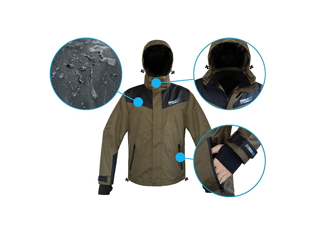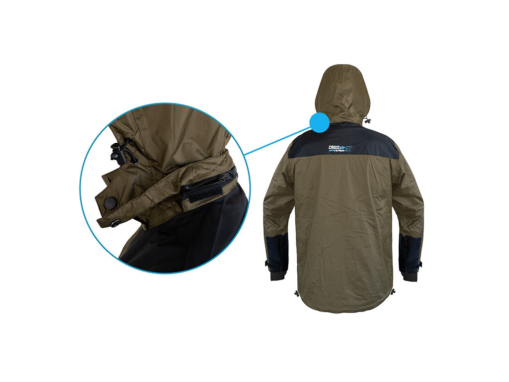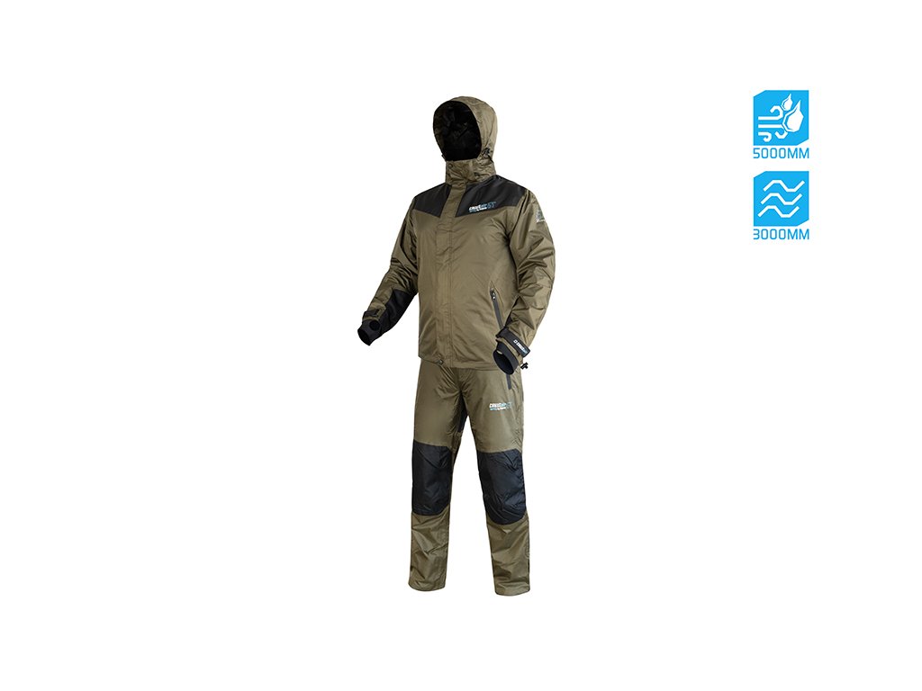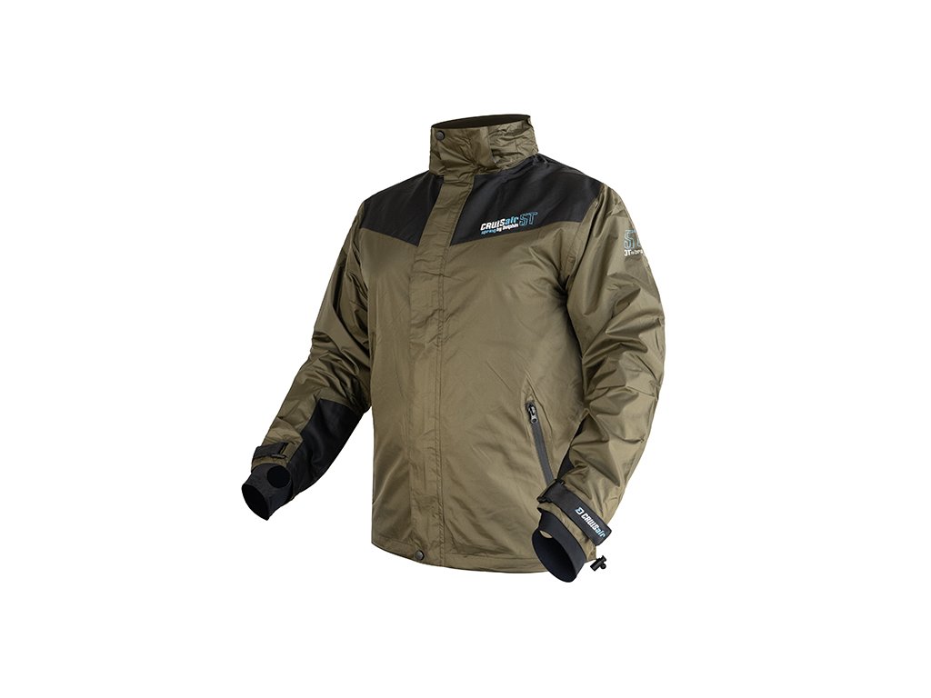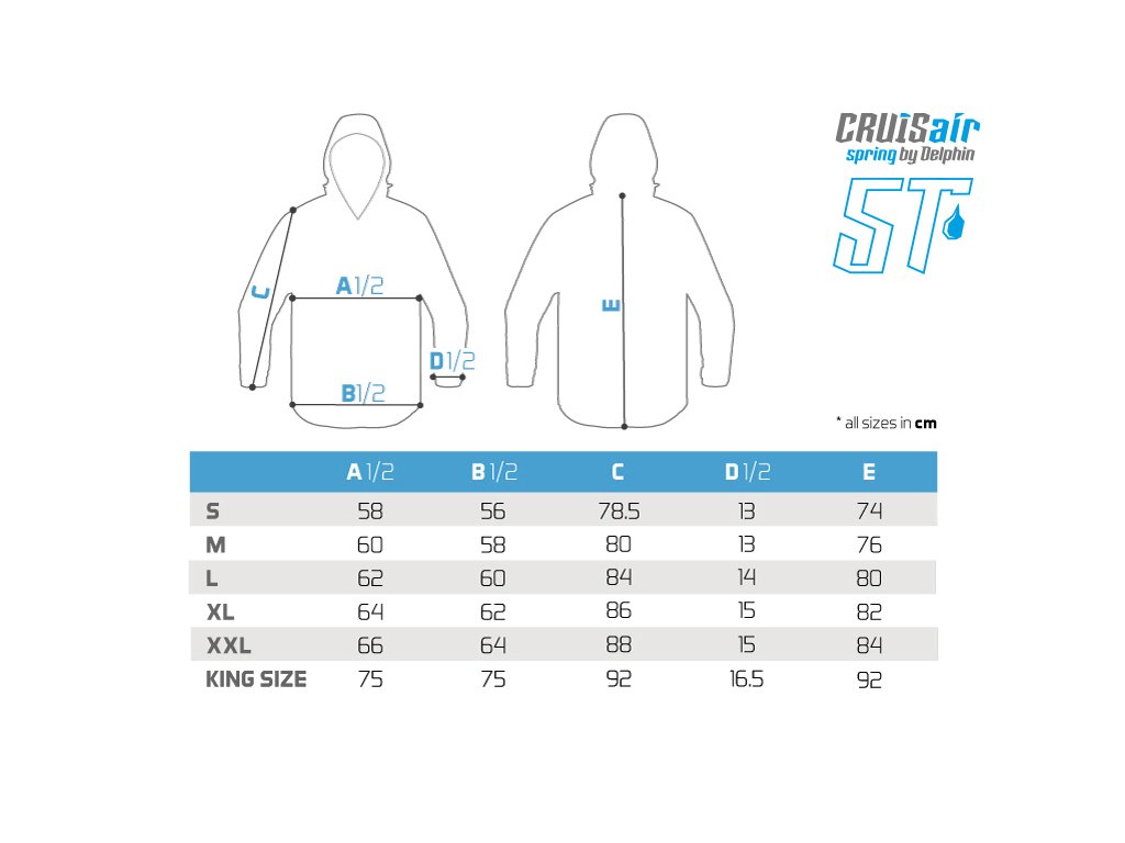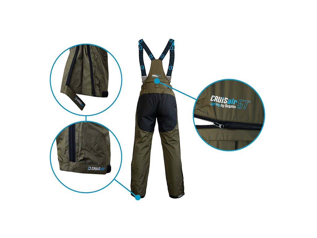 Dýchatelné svrchní oblečení nabízející excelentní ochranu vůči nepříznivým podmínkám, a to zejména dešti a větru. Delphin CruisAIR SPRING 5T je svými parametry vhodný zejména pro přechodné období jara a podzimu, kdy je počasí často nevyzpytatelné. Komplet CruisAIR SPRING 5T se skládá ze samostatně prodávané bundy a kalhot, což vám dává možnost nakombinovat si správnou velikost každého dílu. Nekompromisní kvalita použitých materiálů a odolnost vůči živlům perfektně charakterizují tento komplet. Nabízí vodní sloupec 5000mm ve spojení s paropropustností 3000g/m2/24h, díky čemuž vás nepřekvapí ani intenzivní liják, zůstanete v suchu a jen tak snadno se v něm nezpotíte. Bunda Vnitřní strana bundy je opatřena síťovinovou látkou, která zamezuje dotyku kůže s vnějším materiálem. Kromě toho je na dotek velmi příjemná, čímž zvyšuje pohodlí během nošení. Uvnitř je i velmi praktická zipovatelná kapsa, vhodná například na doklady, či jiné cennosti. Dvě kapsy se nacházejí i na vnější straně bundy, přičemž disponují voděodolnými zipy, díky čemuž nehrozí zatečení vody dovnitř. Zapínání bundy je zajištěno pomocí odolného zipu, který je překryt pásem tkaniny se suchými zipy. Rukávy jsou na zápěstí regulovatelné pomocí popruhů se suchým zipem a tedy je možné si je pořádně utáhnout a minimalizovat vtékání vody po rukou. Ve spodní části bundy se nacházejí po bocích gumičky umožňující zatáhnutí a přizpůsobení dle vašich potřeb. Nejvíce namáhané části jsou překryty černou tkaninou odolnou vůči poškození a fyzickému zatížení. Samozřejmostí na bundě je kapuce, stahovatelná dvěma gumičkami. Kapuci je navíc možné odepnout pomocí zipu a bundu tak využívat i bez ní. Kalhoty Jednou z hlavních výhod kalhot je vyvýšený pas v oblasti křížů, čímž bude spodní část vašich zad dokonale chráněna. V oblasti hýždí a kolen se nachází zesílená černá látka, jejímž úkolem je ochrana před znehodnocením, těchto používáním nejvíce náchylných částí kalhot. Elastické kšandy se zapínáním na klipy zaručí, že kalhoty budou dobře sedět a nebudou vám padat. Zapínání pasu je provedeno z kvalitního zipu a 2 kovových cvoků, nechybí ani poutka po obvodu sloužící pro použití pásku. Ve spodní části lze kalhoty regulovat pomocí krytého zipu a zatahovacího pásu se suchým zipem. Při praní doporučujeme použít speciální prací prostředek na funkční oblečení, prát při max. 30°C, neždímat, nežehlit a v případě potřeby použít impregnační přípravek, který obnoví vodoodpudivou úpravu vnějšího materiálu.Doplňkové parametry