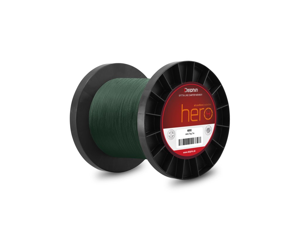".... 4 vláknová šňůra za cenu monofilu..." Delphin HERO je spolehlivá šňůra pletená ze 4 PE mikrovláken. Systematickým pletením vláken je dosažena výborná nosnost šňůry a téměř nulová průtažnost. Záběr se tak okamžitě přenáší z nástrahy do rybářského prutu, což umožní reagovat daleko rychleji než při použití vlasce. Šnůra je povrchově upravená, čímž je eliminovaná její nasákavost. Díky široké škále nabízených průměrů a nosností je Delphin HERO velmi vhodná pro použití na většinu rybolovných technik!Doplňkové parametry