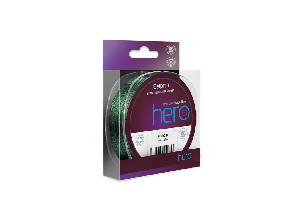 Delphin HERO 8 je spolehlivá šňůra, pletená z 8 PE mikrovláken. Systematickým pletením vláken je dosažena výborná nosnost šňůry, téměř nulová průtažnost a mnohem jemnější povrch oproti 4 vláknovým šňůrám. Záběr se tak okamžitě přenáší z nástrahy do rybářského prutu, což umožní reagovat mnohem rychleji než při vlasci. Navíc díky hladšímu povrchu je mnohem šetrnější k očkům prutu než 4 vláknové šňůry. HERO 8 je povrchově upravena, čímž je eliminována její nasákavost. Díky široké škále nabízených průměrů a nosností, je Delphin HERO 8 velmi vhodná pro použití na většinu rybolovných technik!Doplňkové parametry
