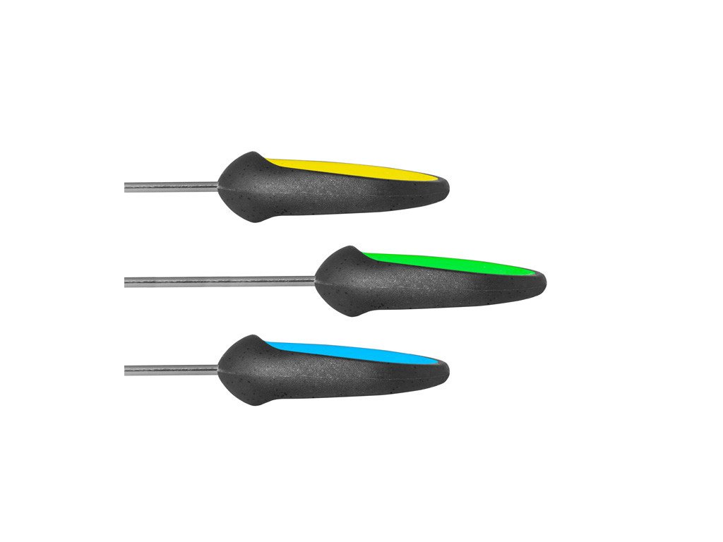 Do setu GRIP jsme vložili ty nejpoužívanější typy jehel a vrták na tvrdé nástrahy. V cenově výhodném balení tedy najdete jehlu LeadCore, kterou můžete použít na olověnou šňůru, či jako univerzální jehlu. Model Safety s ostrým hrotem využijete při propichování a navlékání tvrdých nástrah. Pokud budete chtít nastražit opravdu na kámen vysušenou kouli, předvrtejte si ji vrtáčkem Drill, který je taktéž součástí setu. Všechny produkty GRIP jsou navrženy naším designérským oddělením ve spojení s týmem testerů. Jsou baleny v ekologickém recyklovaném obalu, který šetří naše životní prostředí. Produkty GRIP mají pohodlnou pogumovanou rukojeť s výraznými barvami, které eliminují ztrátu. Tvrdý plast je v kamufláži G-round.