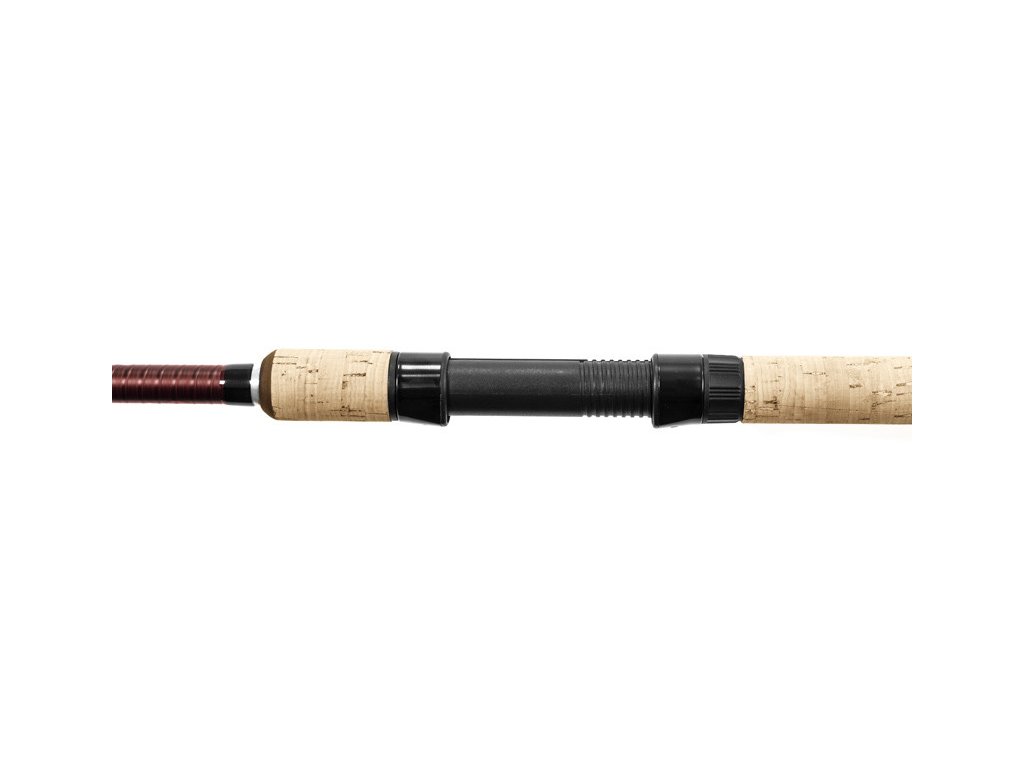 Rukojeť je pokryta korkem, na který příjemně navazuje profilovaná hnědá EVA pěna, jejímž úkolem je nahradit korek na těch nejvíce exponovaných místech. Ukončena je elegantní hliníkovou koncovkou. Tato rukojeť dokonale padne do ruky a ještě zvyšuje komfort z používání daných prutů. Prut je osazen odlehčenými SiC očky vysoké kvality. Ty dokonale rozdělují sílu po celé délce blanku a spolehlivě vedou vlasec při náhozech nebo zdolávání ryb.
