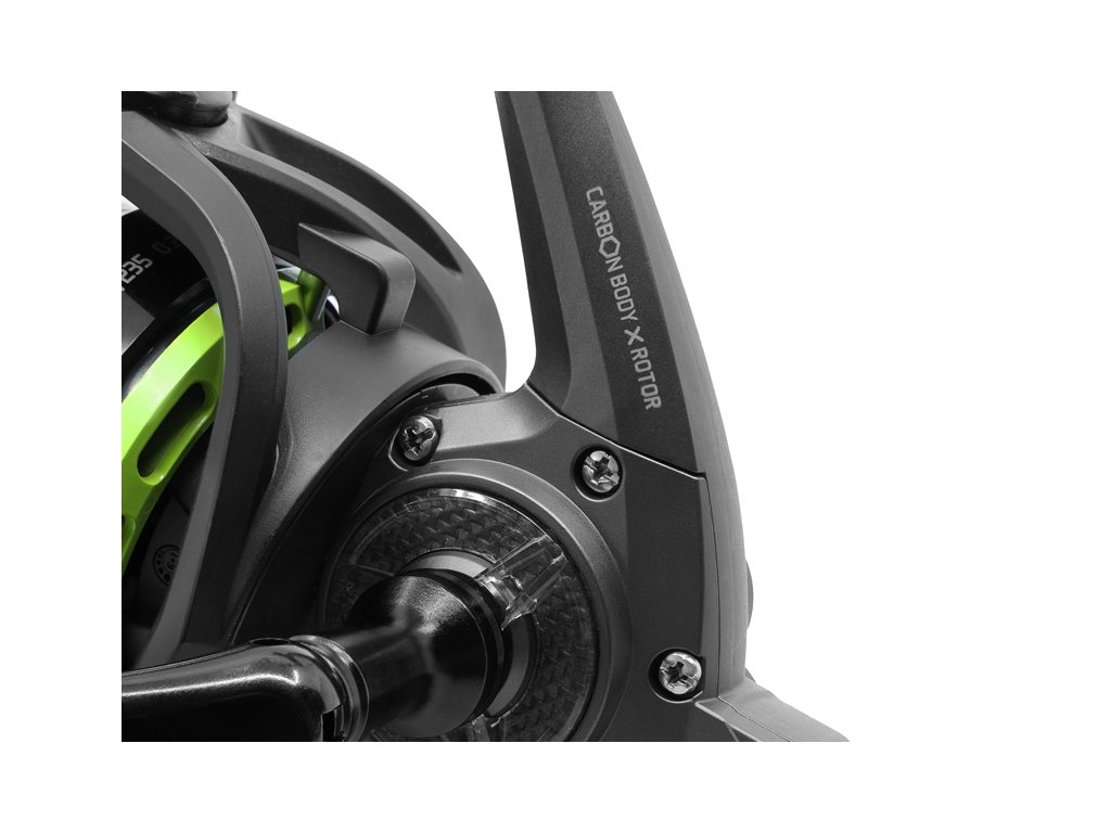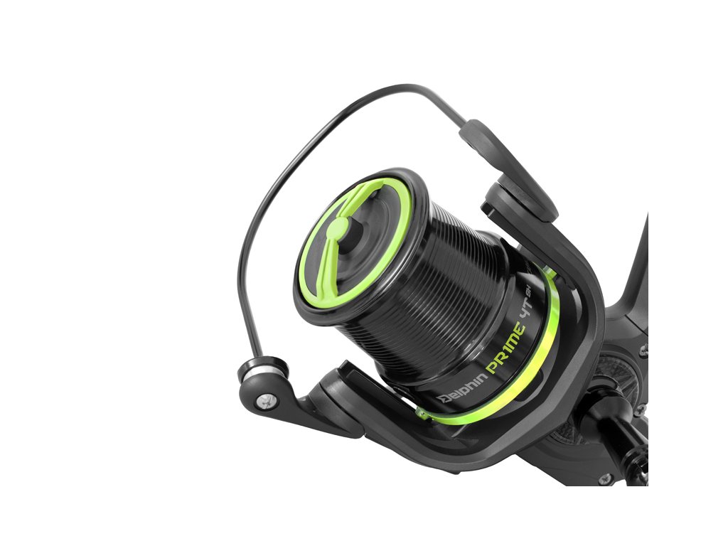 Pokud se chystáte na feederový lov na velké vodní plochy s vysokým rybářským tlakem, kdy o úspěchu rozhoduje přesnost a délka vašeho hodu, naviják Delphin PR1ME by rozhodně neměl chybět ve vaší výbavě. Je vybaven vysokou kónickou cívkou s odhozovou hranou, která výrazně přispívá k délce vašeho hodu. Mělká kovová cívka je navržena tak, aby pojala dostatečné množství vlasce. Tělo i rotor vyrobené z karbonu zajišťují nízkou hmotnost navijáku, a to i přes jeho větší rozměry. Pod cívkou se nachází ochrana, která zabraňuje nechtěnému zapadávání vlasce během navíjení. Kombinace převodového poměru 4.7:1 a pomalé oscilace cívky zajišťuje přesné a rovnoměrné ukládání vlasce po celé její délce, což je klíčové, pokud se již rozhodnete nahazovat na maximální vzdálenosti. O bezproblémový a tichý chod se stará sedm kvalitních kuličkových ložisek. Naviják je zároveň vybaven středně rychlou přední brzdou, která umožňuje přesné dávkování brzdné síly v závislosti na podmínkách při zdolávání. Kovová klika je zakončena robustním pogumovaným madlem, které umožní komfortní zdolávání i větších ryb. Zeleno-černé barevné provedení navijáku Delphin PR1ME dokonale zapadne k ostatním produktům z feederové série REAXE. Technické parametry: Delphin Pr1me 4T SH vel. S 4000 Kapacita cívky mm/m: 0.14/350, 0.18/210, 0.20/170 Převodový poměr: 4.7:1 Návin na jedno otočení kliky: 70 cm Počet ložisek: 6+1 Hmotnost: 382 g Delphin Pr1me 5T SH vel. S 5000 Kapacita cívky mm/m: 0.18/235, 0.20/190, 0.22/155 Převodový poměr: 4.7:1 Návin na jedno otočení kliky: 80 cm Počet ložisek: 6+1 Hmotnost: 396 gDoplňkové parametry