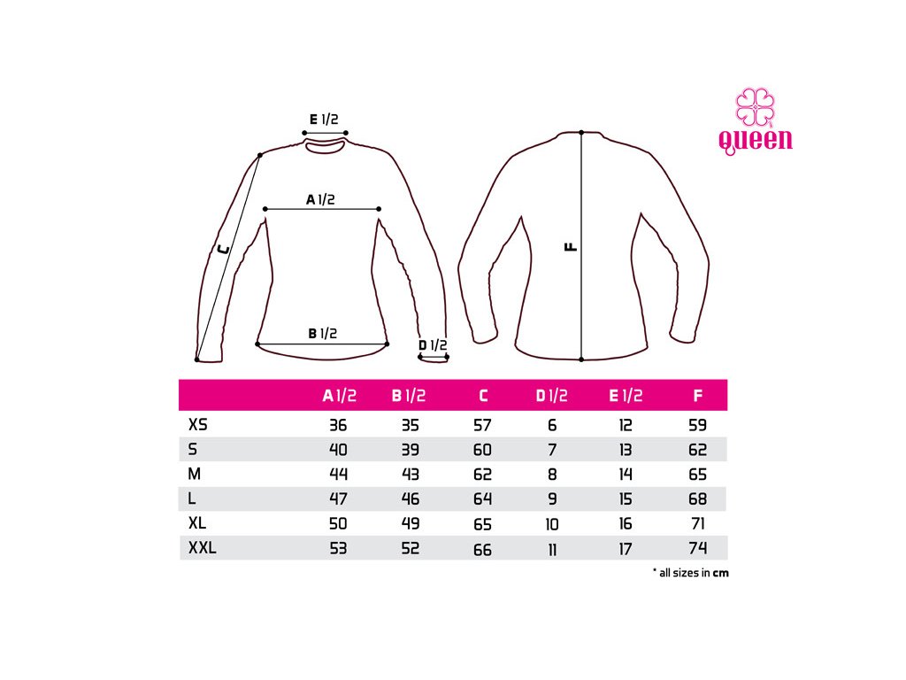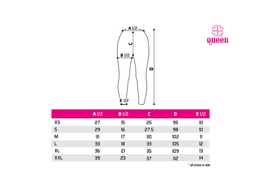 Termoprádlo QUEEN 4LOVE je vysokokompresní prádlo vyhotovené z tkaniny výrazně vyšší gramáže, než je obvyklé. V případě, že kvůli komfortu preferujete volnější střih, doporučujeme vzít o jedno číslo větší velikost, než standardně nosíte.