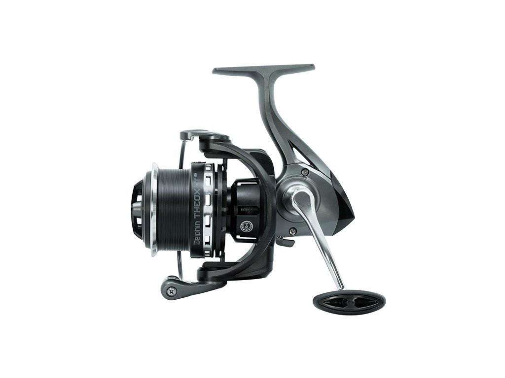 Elegantní design, kompaktní velikost a špičkové vlastnosti – i tak by se dal v krátkosti popsat model Delphin THEOX, který byl speciálně navržen pro lov feederovou technikou. Jeho rozměry jej předurčují k použití při klasickém feederu, ale i při lovu na method feeder. Model THEOX disponuje 6 kuličkovými ložisky, která se starají o plynulý a tichý chod. Spolehlivý převodový mechanismus s poměrem 5.1:1 zaručuje jistotu při zdolávání ryb a zároveň umožňuje rychlé stažení montáže při přehazování, díky čemuž bude váš lov efektivnější. Cívka, kterou je naviják vybaven, poutá pozornost nejen designovým zpracováním, ale také svými technickými parametry. Mělká, ale dostatečně široká cívka umožňuje precizní navinutí vlasce a minimalizuje tření. Odvíjení je tak maximálně plynulé, což oceníte zejména při přesných hodech na delší vzdálenosti. Na cívce se navíc nachází odhozová hrana, která snižuje tření při nahazování a tak budou vaše hody ještě o něco déle. Jelikož při lovu na feeder je přesnost klíčová, cívku jsme vybavili dvěma kovovými klipy. Pod cívkou se nachází plastová ochrana, která zabraňuje vniknutí vlasce pod cívku při nahazování. Naviják disponuje pomalou přední brzdou, která umožňuje přesné přizpůsobení brzdné síly podle aktuálních podmínek při zdolávání. Kovová klika je k navijáku připevněna pomocí technologie Screw-In, což znamená, že se zatáčí přímo do matice v těle navijáku. Díky tomu se eliminuje jakákoli vůle. Pro maximální komfort při manipulaci je klika vybavena pogumovaným madlem, které dokonale sedne do ruky. Elegantní tmavý design s jemnými stříbrnými prvky činí z modelu Delphin THEOX naviják, který se hodí téměř ke všem barevným kombinacím. Díky své spolehlivosti a špičkovým vlastnostem se stane každá výprava pohodlnější a efektivnější. Technické rozměry: Delphin THEOX 4T SH vel. S 4000 Kapacita cívky mm/m: 0.18/309, 0.20/250, 0.22/200 Převodový poměr: 5.1:1 Návin na jedno otočení kliky: 83cm Počet ložisek: 5+1 Hmotnost: 314g Delphin THEOX 5T SH vel. S 5000 Kapacita cívky mm/m: 0.20/400, 0.22/330, 0.24/278 Převodový poměr: 5.2:1 Návin na jedno otočení kliky: 85cm Počet ložisek: 5+1 Hmotnost: 380gDoplňkové parametry
