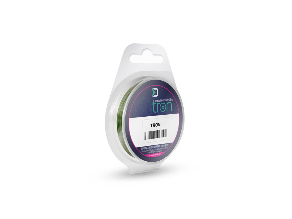"...tenká jako vlas..." Delphin TRON je téměř tak tenká jako vlas, avšak její nosnost je porovnatelná s monofilními vlasci o průměru až 3 násobně vyšším. Navzdory unikátnímu průměru je Delphin TRON 100% pletená šňůra. Pro její výrobu byla použita nejjemnější mikrovlákna, upletená do dokonale kulatého průměru. Šňůra je navíc povrchově upravená, což zabezpečuje její minimální nasákavost a odolnost vůči oděru. Vzhledem na její mimořádný průměr a nosnost je ideální šňůrou pro vytváření těch nejjemnějších návazců.Doplňkové parametry