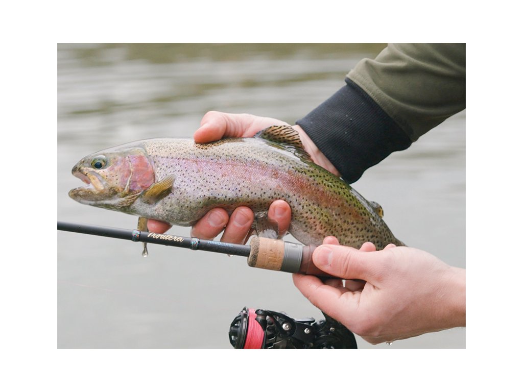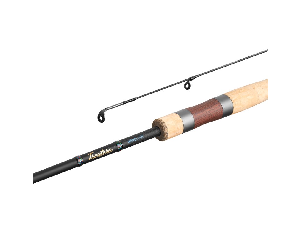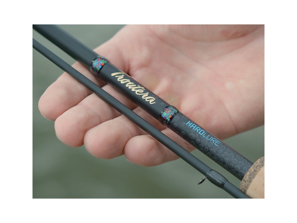 Jak už název napovídá, TROUTERA HardLURE je speciálně navržený prut pro lov pstruhů s použitím malých, tvrdých umělých nástrah jako jsou rotačky, plandavky nebo woblery. Díky svému propracovanému designu a vynikajícím vlastnostem, které tento prut nabízí, se stane neodmyslitelnou součástí výbavy pro většinu příznivců lovu pstruhů či okounů. Štíhlý blank postavený na 24T karbonu činí prut extrémně lehkým a vyznačuje se rychlou akcí nezbytnou pro nahazování malých nástrah do dostatečné vzdálenosti od břehu, právě do míst, kde pobývají plaší pstruzi. K preciznímu vedení jemné šňůry nebo vlasce dopomáhají i jednostopková očka se SIC výplní, která byla na prut TROUTERA HardLURE použita. Černé vinutí oček a samotná černá očka skvěle ladí s celkovým designem prutu. Vizuálně působivým doplňkem prutu je sedlo s imitací dřeva, které dokonale doplňuje korková rukojeť. Použité materiály jsou vysoce kvalitní a ošetřené proti nepříznivým vnějším vlivům. Rukojeť i sedlo byly navrženy tak, aby se prut snadno držel i při několikahodinovém lovu. Výhodou rukojeti je její krátká délka, která zaručuje zvýšenou obratnost při vedení nástrahy, záseku, ale také při zdolávání ryby. Delphin TROUTERA HardLURE už na první pohled vyniká svým elegantním designem. Tmavý blank, korkovou rukojeť, dřevěné sedlo a prvky zlaté a modré barvy doplňuje vinutí nad rukojetí, které je inspirováno barvami pstruha duhového. Kombinací těchto vlastností tak vznikl extrémně funkční a elegantní přívlačový prut, který překvapí svojí přijatelnou pořizovací cenou. Technické parametry: Model: 180cm 1 – 5 g Počet dílů: 2 Průměr blanku nad rukojetí: 7mm Počet oček: 8 Transportní délka: 94,5cm Hmotnost: 82g Rukojeť: korek, imitace dřeva Délka rukojeti (od spodní části prutu po střed sedla): 18,5cm Model: 210cm 2 – 7 g Počet dílů: 2 Průměr blanku nad rukojetí: 8mm Počet oček: 9 Transportní délka: 109,5cm Hmotnost: 90g Rukojeť: korek, imitace dřeva Délka rukojeti (od spodní části prutu po střed sedla): 21,5cmDoplňkové parametry
