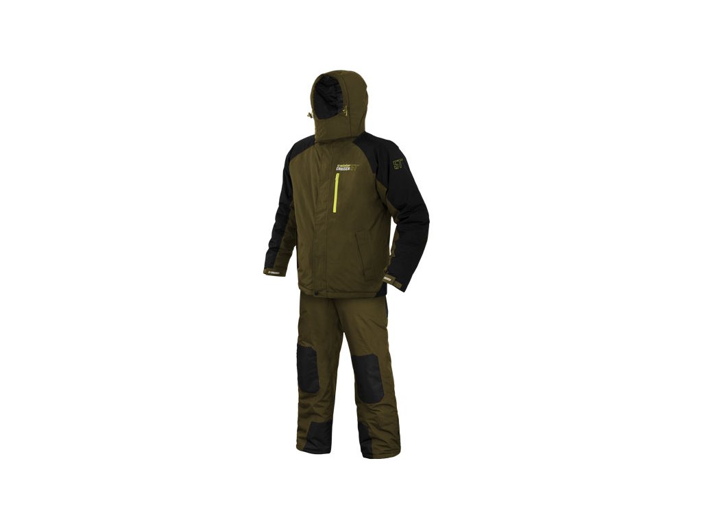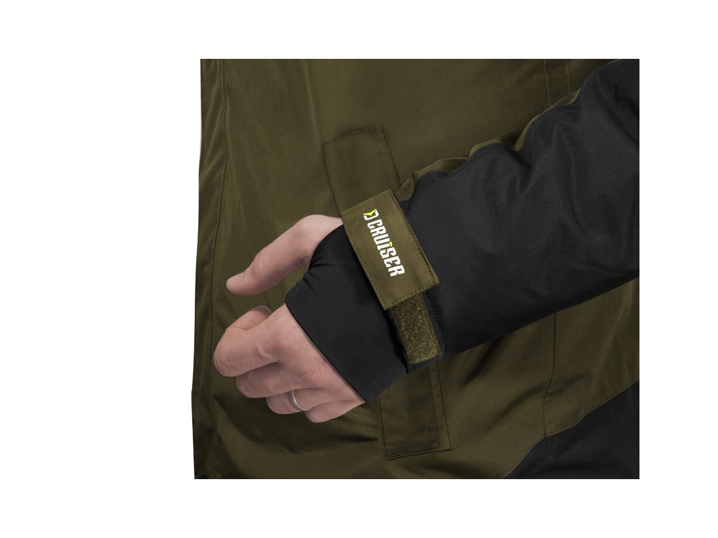Nekompromisní, extra teplé oblečení, které vás ochrání před zimou a deštěm během studených zimních dnů. Takový je zimní komplet Winter Cruiser 5T, navržený značkou Delphin a testovaný v těch nejhorších povětrnostních podmínkách, se kterými se můžete u vody setkat. Komplet Winter Cruiser se skládá ze samostatně prodávané bundy a kalhot. Vnější vrstva bundy i kalhot je vyrobena z voděodolného materiálu s vodním sloupcem 5000mm a kompletně podlepenými švy. Tyto parametry zaručují maximální pohodlí, teplo a ochranu před deštěm během vašich rybářských výprav či jiného pobytu v přírodě. BUNDA Vnitřní strana bundy je opatřena na dotek velmi příjemnou fleecovou vrstvou, která pečuje o tepelný komfort. Stejný materiál je i na límci, díky čemuž nehrozí nepříjemný dotek na krku či škrábání. Uvnitř je i velmi praktická zipovatelná kapsa, vhodná například na doklady, či jiné cennosti. Kapsy se nacházejí také na vnější straně bundy. Všechny disponují výraznými, voděodolnými zipy, díky čemuž nehrozí natečení vody dovnitř. K voděodolnosti vnějších bočních kapes přispívají i překrytí, která jsou našita zvrchu. Boční kapsy mají navíc uvnitř fleecovou vrstvu, která vytváří ideální prostor pro zahřátí rukou. Bundu lze zapnout pomocí masivního a odolného dvojzipu, který je z vnější strany překryt lemem, čímž je chráněn před vodou a větrem. Pás bundy disponuje stahovatelnými gumičkami, které podstatně přispívají k udržení tepla uvnitř a minimalizují možnost podfouknutí. Samozřejmostí na bundě je kapuce, stahovatelná dvěma gumičkami. Devizou kapuce je také poutko se suchým zipem, pomocí kterého je možné ji velikostně přizpůsobit či zavěsit. Rukávy bundy jsou na zápěstích vybaveny stahovatelnými pásky se suchým zipem, ale i integrovaným ochranným rukávem na dlaň, přes který lze prostrčit palec. KALHOTY Už při prvním kontaktu s kalhotami je jasné, že zima v nich rozhodně nebude. Jednou z hlavních výhod je výrazně vyvýšený pás, čímž budou vaše záda, ale zejména kříže dokonale chráněny. Design kalhot stylově dotváří délkově nastavitelné kšandy s logy značky Delphin. V oblasti hýždí, kolen i kotníků se nachází zesílená černá látka, jejímž úkolem je ochrana před znehodnocením, těchto používáním nejvíce náchylných částí kalhot. Zároveň efektně přispívá k celkovému designu. Devizou kalhot je i 35 cm dlouhý zip, který lze rozepnout z vrchu i zespodu. Díky tomu se v případě potřeby nemusíte rozepínat či svlékat bundu. Ve spodní části kalhot se nacházejí pásky se suchým zipem, čímž je lze v oblasti kotníku rozšířit ale i obepnout těsně kolem bot. Dvě boční kapsy jsou vybaveny voděodolnými výraznými zipy, díky čemuž nehrozí zatečení vody dovnitř. Praktické poutko na zavěšení v zadní části jen zvýrazňuje propracovanost těchto kalhot. Při praní doporučujeme použít speciální prací prostředek na funkční oblečení, prát při max. 30°C, neždímat, nežehlit a v případě potřeby použít impregnační přípravek, který obnoví vodoodpudivou úpravu vnějšího materiálu.Doplňkové parametry