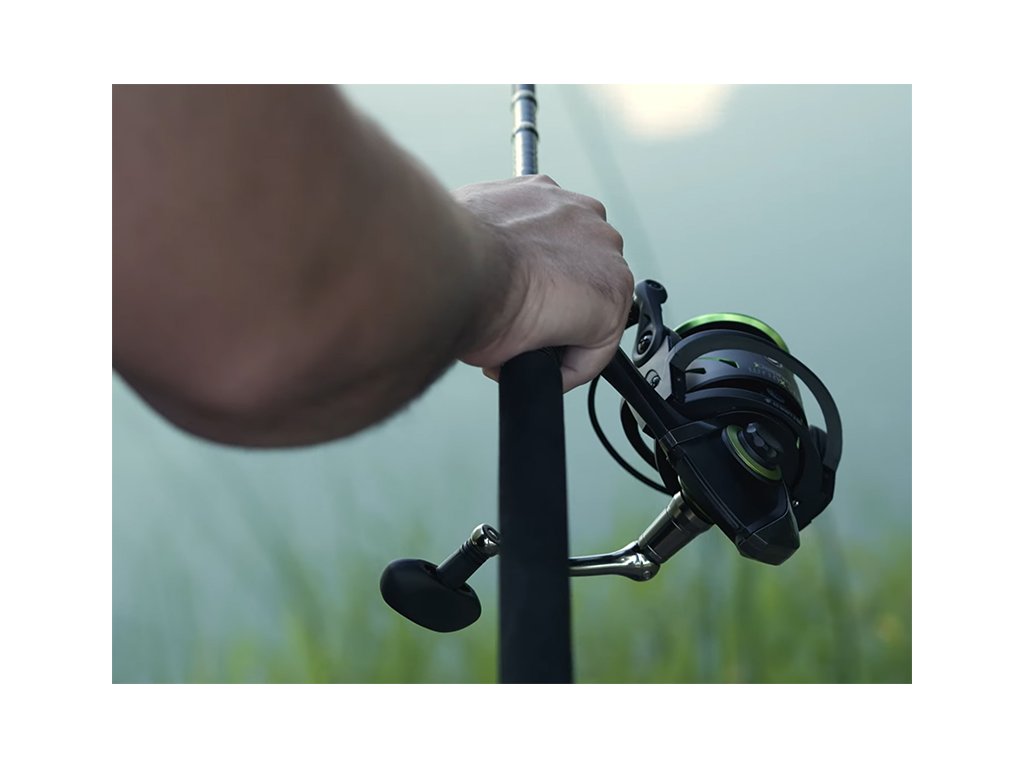 Neuvěřitelně odolný a pevný naviják určený pro lov na těžkou přívlač. Už v momentě, kdy vezmete WRINX do ruky, pochopíte, že si poradí i s velkými predátory našich vod. Základ navijáku tvoří odolný kovový rám a karobonové tělo, které jsou doplněny mohutným překlapěčem a kovovou rolničkou, díky kterým jej můžete zatížit na maximum. Naviják disponuje převodovým poměrem 5.8:1, který se spolu se sestavou 7+1 nerezových kuličkových ložisek postará o jeho hladký a plynulý chod. Kovová klika já založená na SCREW-IN systému, což znamená, že matice pro upevnění kliky je umístěna přímo v těle navijáku, čímž dochází k minimalizaci jakékoli vůle. Klika stříbrné barvy je osazena kvalitním gumovým madlem, které velmi dobře padne do ruky a zpříjemní vám dlouhé hodiny strávené vláčením. Po designové stránce naviják působí doslova prémiově. Tělo a kovová cívka jsou matné černé barvy s lesklými šedými a zelenými prvky. Wrinx má navíc ochranu vůči slané vodě, takže je vhodný také pro mořský rybolov. Odolná hřídel je vyrobena z nerezové oceli a dodává navijáku potřebnou sílu při zdolávání velkých predátorů v těžkých podmínkách. Technické parametry Kapacita základní cívky mm/m: 0.30/354 0.35/260 0.38/221 Převodový poměr: 5.8:1 Počet ložisek: 7+1 Hmotnost: 470gDoplňkové parametry
