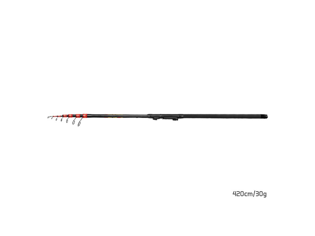 Luxusní bolonézový teleskopický prut, postavený na pevném 24T blanku, který si poradí i s většími výzvami této rybolovné techniky. Po vysunutí dílů vzniká excelentně pracující celek s jemnou špičkou a pevným hřbetem prutu. Kromě toho je matný černý blank velmi odolný a vyznačuje se také nízkou hmotností. Tu oceníte zejména při časté manipulaci s prutem, která je při lovu na splávek nezbytná. XERXES disponuje lehkými jednostopkovými SIC očky, která jsou během transportu dokonale chráněna plastovým krytem dodávaným spolu s prutem. Na spolehlivé uložení navijáku bylo použito osvědčené sedlo, které téměř nezatěžuje blank a také přispívá k redukci celkové hmotnosti. Manipulaci s prutem usnadňuje černá FullShrink rukojeť. Díky tomu výborně sedne do ruky a také se pohodlně drží i během chladných dní. Na konci je osazena ocelovým prvkem, který zamezuje jejímu poškození. Pokud patříte mezi rybáře, kteří propadli kouzlu lovu se splávkem, tak XERXES je prut, který by ve vaší výbavě neměl chybět. Technické parametry: Model: 360cm / 30g / Počet dílů: 6 Průměr blanku nad rukojetí: 15 mm Počet oček: 6 Transportní délka: 91,5 cm Hmotnost: 170g Rukojeť: Shrink tube Délka rukojeti (od spodní části prutu po střed sedla): 48,5 cm Model: 390cm / 30g / Počet dílů: 7 Průměr blanku nad rukojetí: 17 mm Počet oček: 7 Transportní délka: 94,5 cm Hmotnost: 190g Rukojeť: Shrink tube Délka rukojeti (od spodní části prutu po střed sedla): 48,5 cm Model: 420cm / 30g / Počet dílů: 7 Průměr blanku nad rukojetí: 17 mm Počet oček: 7 Transportní délka: 96 cm Hmotnost: 210g Rukojeť: Shrink tube Délka rukojeti (od spodní části prutu po střed sedla): 48,5 cmDoplňkové parametry