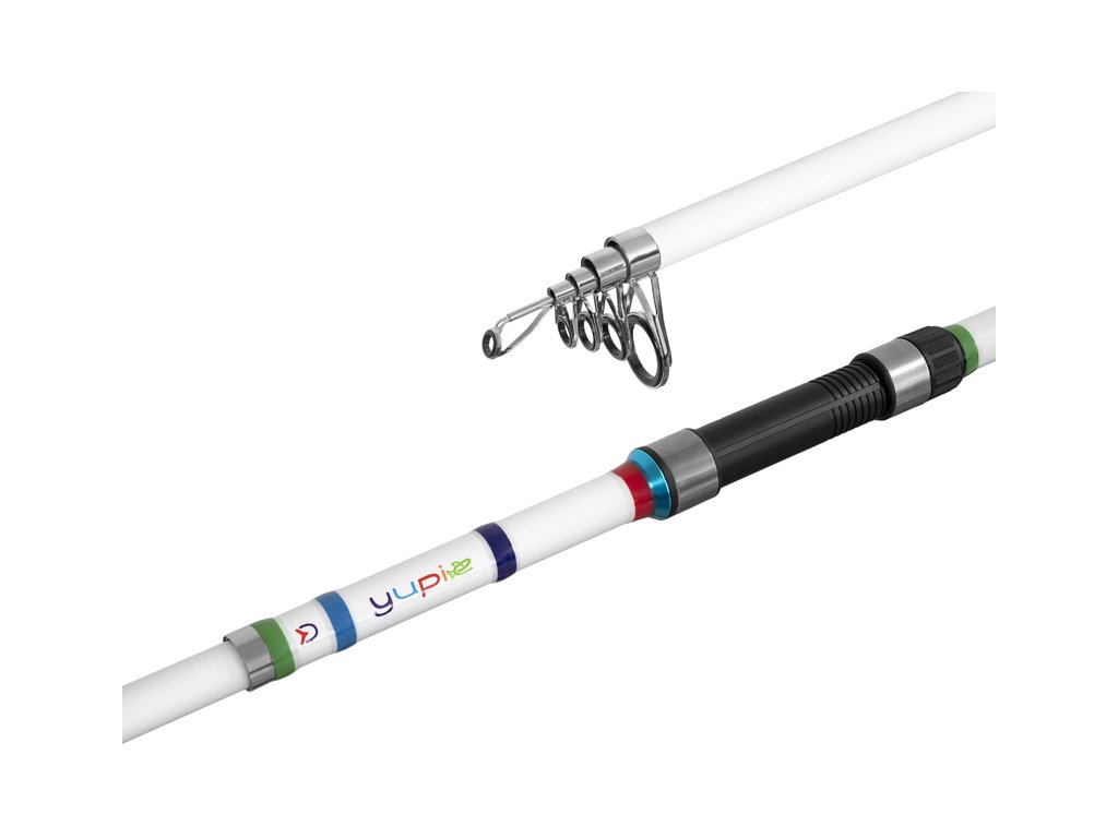 Nezapomínáme ani na nejmenší rybáře, pro které jsme speciálně připravili pruty v sérii YUPIE. Jedná se o univerzální teleskopický prut, vhodný pro začátečníky a na většinu rybolovných technik. Hravý design, do kterého jsme pruty zaoděli, potěší oko nejednoho mladého lovce. Dělená rukojeť, na jejímž konci se nachází zelená EVA pěna je svojí délkou přizpůsobena rukám malých rybářů. Na prutu jsou osazena očka s kvalitní SiC výplní, aby se zamezilo poškození vlasce. Prut je také vybaven spolehlivým sedlem, vhodným pro různé velikosti navijáků. Díky kompaktní velikosti při transportu se vám YUPIE vejde kdekoli a bude tak vždy po ruce. S tímto prutem se rozhodně u vody nebude nudit ani jedno dítě. Jelikož se teleskopický prut skládá z více dílů a spojů, může být tímto celková délka prutu ovlivněna +/-3% oproti udávané. Technické parametry: Model: 180cm/40g Tele Počet dílů: 5 Transportní délka: 61cm Počet oček: 4 Průměr blanku nad rukojetí: 14,4mm Hmotnost: 132g Rukojeť: dělená EVA pěna Délka rukojeti (od spodní části prutu po střed sedla): 36,5cm Model: 240cm/40g Tele Počet dílů: 6 Transportní délka: 68cm Počet oček: 5 Průměr blanku nad rukojetí: 17,8mm Hmotnost: 172g Rukojeť: dělená EVA pěna Délka rukojeti (od spodní části prutu po střed sedla): 43cmDoplňkové parametry