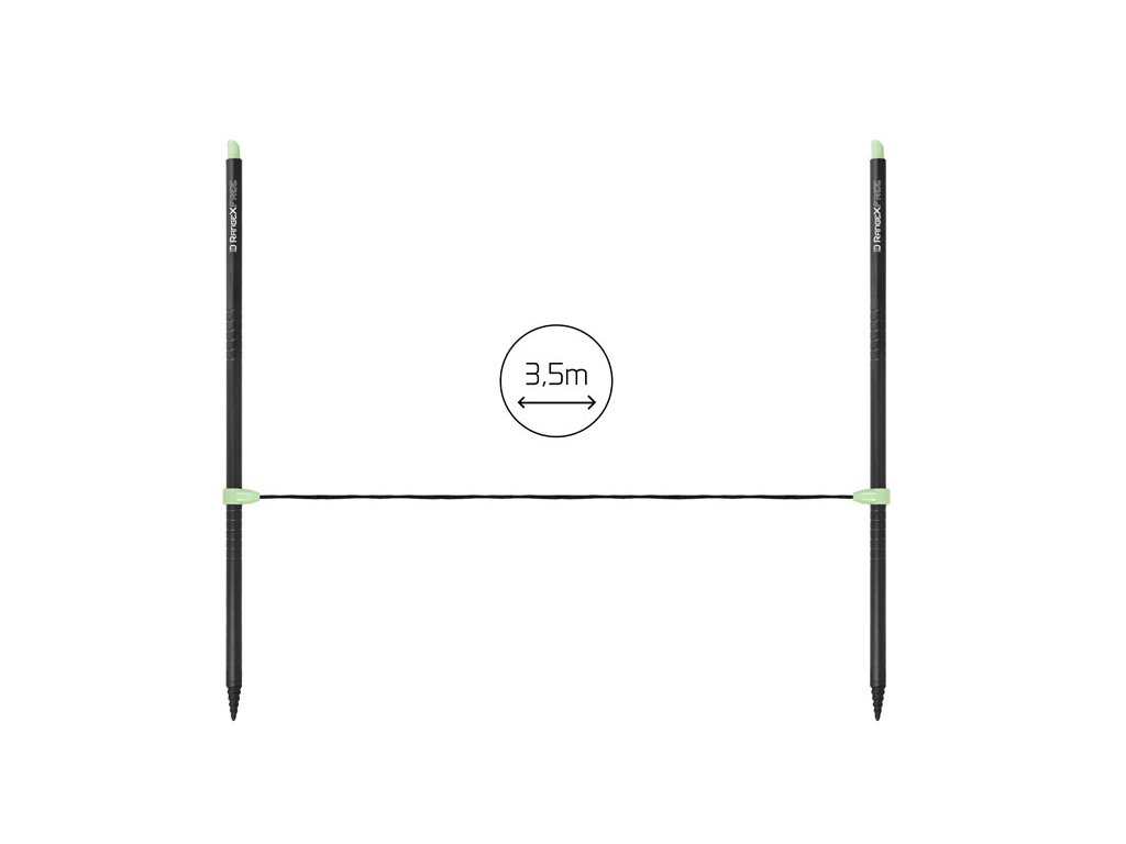RangeX FREE se skládá ze dvou hliníkových tyčí se zářezy. Tyto zářezy slouží k tomu, aby se do nich vlasec či šňůra ukládaly a během vyměřování vzdálenosti tak nehrozí nežádoucí sklouznutí vlasce z tyče. Pro snazší používání v šeru či temnu jsou tyče vybaveny fosforeskujícími koncovkami, které se po nasvícení rozzáří. Pro lepší manipulaci při zapichování do země jsou distanční tyče na spodním konci vybaveny pevným hrotem se závitem. Samozřejmostí je vyměřovací provaz o délce 3,5 metry, který je na obou koncích opatřen oky pro uchycení o tyče. V základu RangeX FREE dostanete v praktickém textilním pouzdře tak, abyste měli vždy vše pohromadě.