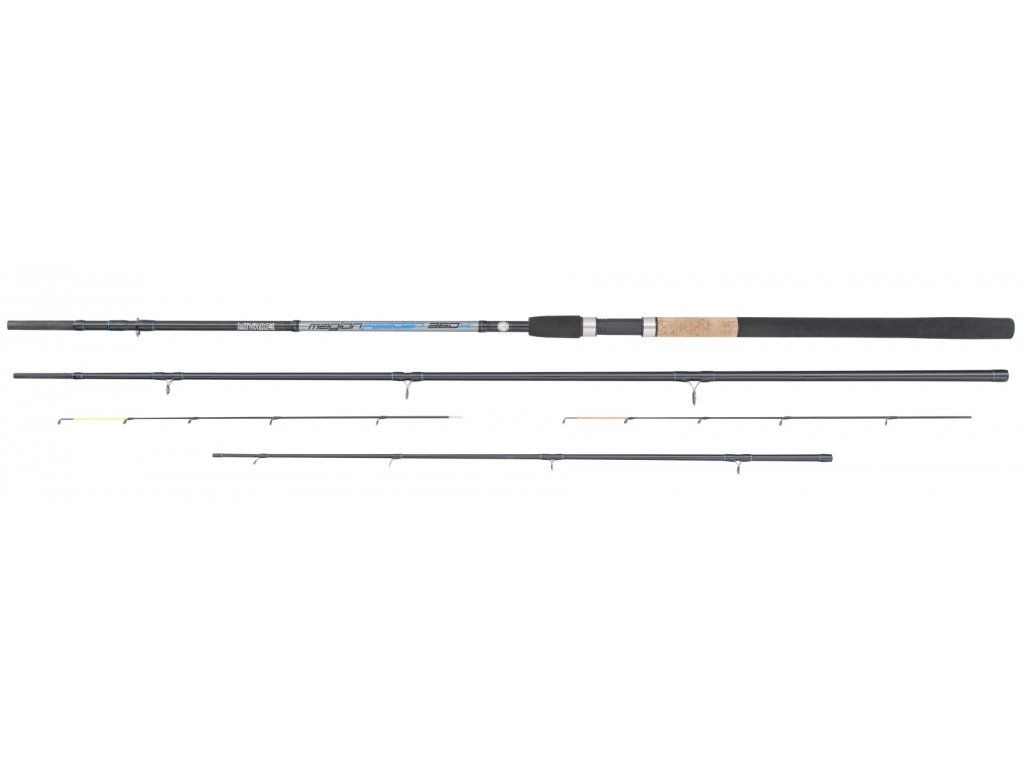 Feederový prut s velmi silným blankem, určený pro lov s těžkými krmítky. Sada velkých oček umožňuje snadné nahazování i na velké vzdálenosti a vysoká dynamika blanku nabízí dostatečné silové rezervy pro zdolávání kaprů a dalších velkých ryb. Tuhé špičky s velkými očky jsou přizpůsobeny lovu na silně proudných vodách. Prut je dodáván se dvěma špičkami.Doplňkové parametry