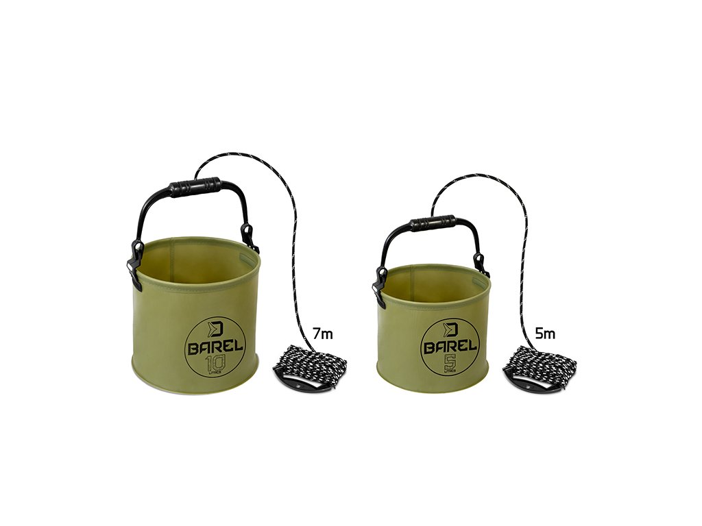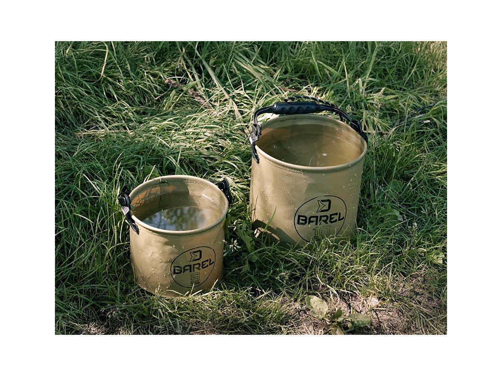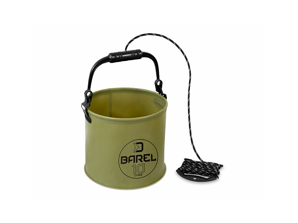 Delphin BAREL je užitečná pomůcka vyrobená z voděodolného EVA materiálu, který je pružný a ohebný a tudíž si váš kbelík můžete poskládat na naprosto minimální rozměry. Slouží hlavně k zalévání ryb na podložce těsně po jejich zdolání a během focení, avšak může být využit také jako malá zásobárna vody pro různé účely jako míchání krmiva nebo mytí rukou a také jako kterékoliv jiné vědro pro uskladnění náčiní, nástrah a podobně. Vědro BAREL je doplněno o pevnou rukojeť černé barvy s provazem, pomocí kterého je možné nabrat si vodu i z větší vzdálenosti od břehu nebo z méně přístupného břehu či člunu. Technické parametry: 5l 20x17cm Transportní rozměr: 20x8cm Délka provazu: 5m 10l 25x22cm Transportní rozměr: 25x10cm Délka provazu: 7mDoplňkové parametry