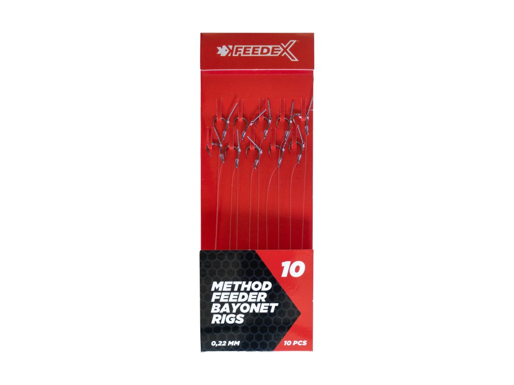 Method feeder návazce se zapichovacím bayonetem jsou určené pro malé pop-up, wafters, feeder boilie či plovoucí i potápivou kukuřici. Jsou osazené profesionálním háčkem Spec-X, kteří používají mnozí závodníci, a fluorocarbonem o délce 10 cm.