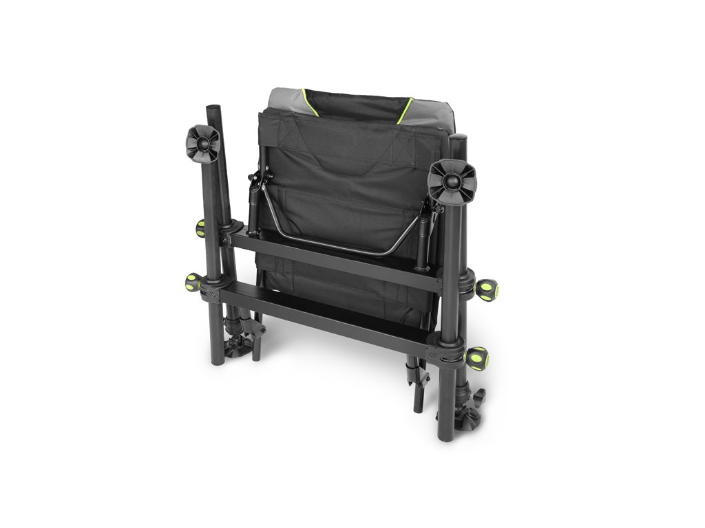 Exkluzivní feederové křeslo, spojující vlastnosti klasických rybářských křesel a luxusních závodních beden.Je postaveno na pevném kovovém rámu se čtyřmi otvory pro výsuvné nohy, které jsou vybaveny mohutnými šrouby s velkými pogumovanými madly. Šrouby jsou otočné kolem osy otvoru a tím pádem je lze zatáhnout ve více pozicích, čímž poskytují větší variabilitu během nastavování výšky nohou. Hrubé hliníkové nohy disponují velkými patkami s kloubovým uchycením a jsou tedy nastavitelné pro různý sklon a nerovnosti terénu. Přední nohy jsou zároveň teleskopické a také výsuvné z kovové konstrukce, takže zvládnou také lov na hrázích a jiných šikmých plochách.