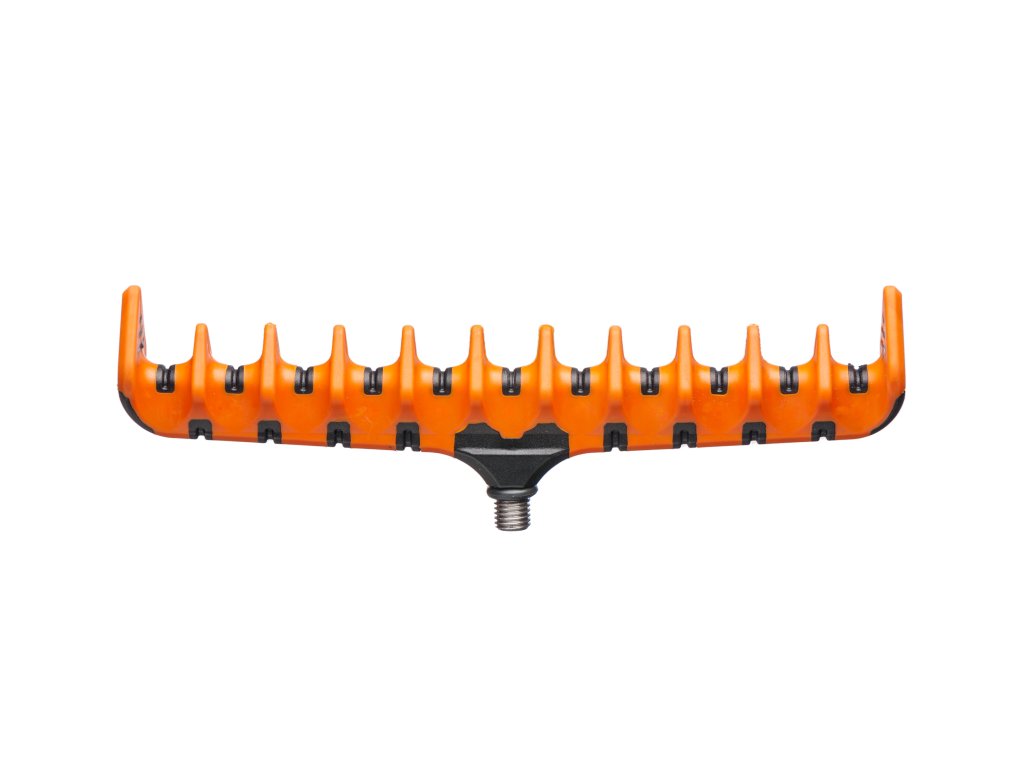 Kvalitní široká přední podpěra pro lov na method / feeder. Výrazné výstupky bezpečně drží prut ve zvolené pozici i ve větru, silném proudu či při prudkém záběru. Drobné výřezy v každé pozici usnadňují průchod vlasce mezi podpěrou a blankem prutu. Její konstrukce je velmi pevná a stabilní. Zároveň je vybavena SoftTouch měkčeným povrchem, který chrání povrch prutu před poškrábáním. Podpěra je osazena kvalitním mosazným závitem, kompatibilním se všemi standardními vidličkami, držáky a rameny.