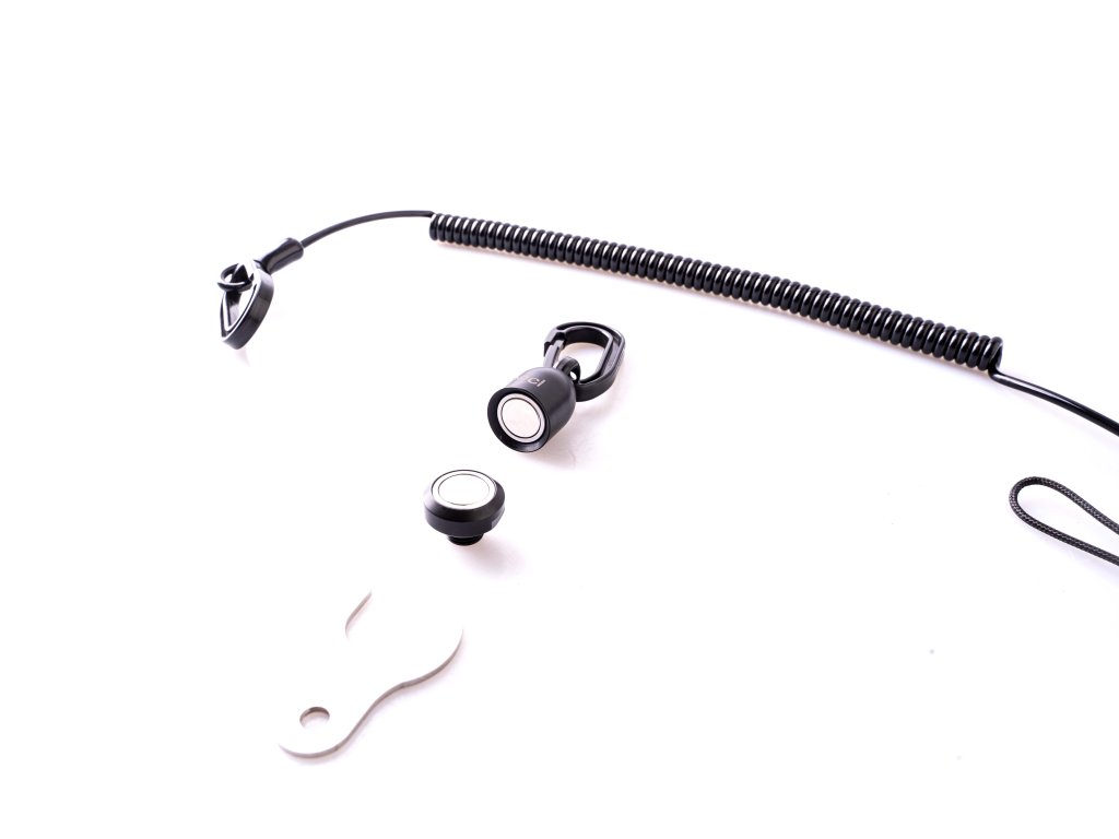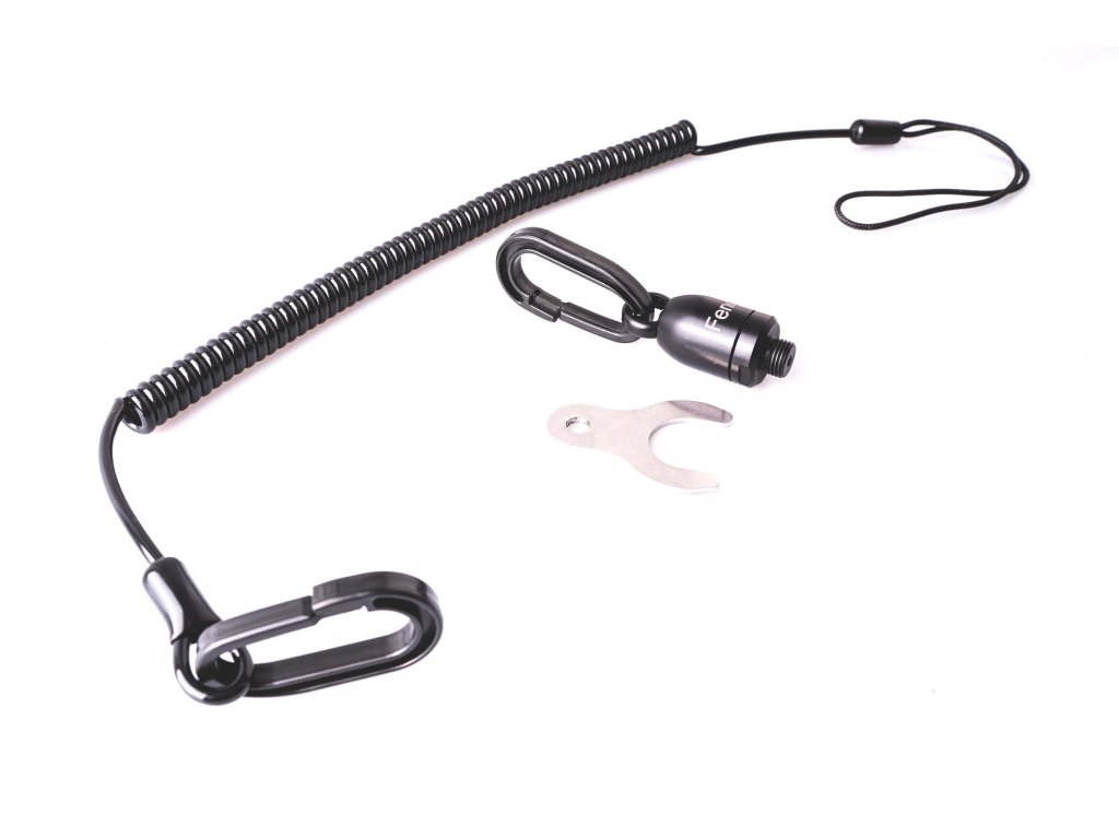 Otočná očka o 360 stupňů, dvě karabiny pro maximální komfort odepínání například při focení s rybou. Ocelové pojistné lanko potažené gumou.