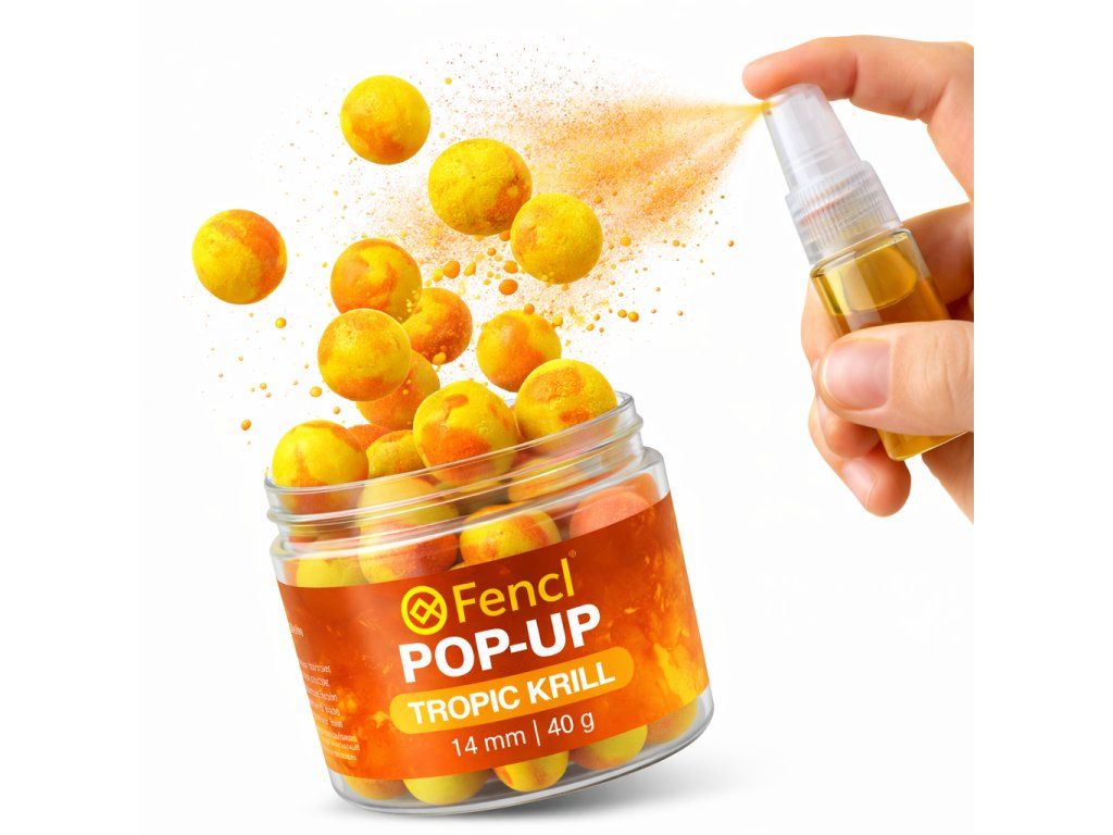 Fencl Pop-Up Tropic Krill jsou plovoucí boilies o průměru 14 mm, které kombinují sladký ananas a zralé mango do výrazného tropického aroma. Tato ovocná směs vytváří silný a okamžitě rozpoznatelný pachový signál, který se rychle šíří vodním sloupcem a přitahuje ryby i z větší vzdálenosti.