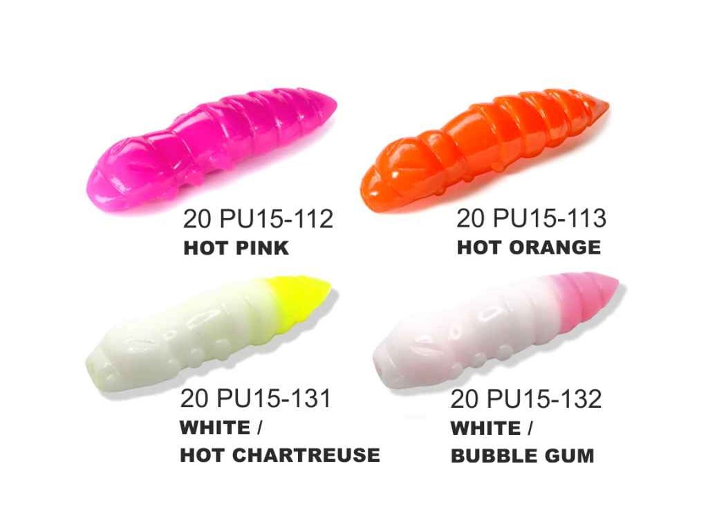 Umělá nástraha FishUP Pupa je velmi oblíbená a působí doslova jako magnet na pstruhy. Je vyrobena z měkkého materiálu, díky čemuž ryba více důvěřuje nástraze a někdy ji dobírá i na vícekrát. FishUP Pupa je poměrně velká nástraha, což umožňuje daleké nahazování a to i za větrného počasí. Stejně jako většina umělých nástrah ve tvaru larvy nemá žádný pohyb. Svou vlastní váhou nebo s malou hlavičkou přepadává vodním sloupcem. Jednou z možností je i vedení larvy těsně pod hladinou. Je jen na vás jakým způsobem bude prezentována. Nástraha je navíc dipovaná což zvyšuje počet záběrů a ve vodě zanechává výraznou pachovou stopu. Přírodní barvy zaručí úspěch v čisté vodě, naopak zářivé budou úspěšné v hluboké nebo kalné vodě.