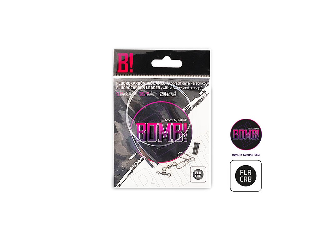 Fluorocarbonový návazec je vyrobený zo 100% fluorocarbonu. Díky němu absolutně zneviditelníte svou nástrahu, no zároveň máte stále jistotu, že vám ostré zuby dravce tohle lanko nepřekousnou. Fluorocarbonové lanko je jemné a měkké na dotyk, no zároveň díky speciálnímu složení granulátu samotnýho lanka, aj velice odolné. Díky vlastnostem tohto lanka je s ním jakákoliv manipulace velice příjemná a lahká. Navíce jeho materiálové složení umožňuje nástrahu odprezentovat na nepřekonatelné úrovni i tím nejopatrnejším predátorem! Na jednej straně lanka BOMB! sa nachází obratlík a na druhem karabinka. V každém balení sa nachází až 2 kusy tohto odolného lanka! Velkosti obratlíkov prislúchající k návazcom: - 15cm/5kg - obratlík #14, karabínka #000, vlasec - 0,50mm - 20cm/7kg - obratlík #12, karabínka #00, vlasec - 0,55mm - 35cm/9kg - obratlík # 6, karabínka # 1, vlasec - 0,60mm - 35cm/13kg- obratlík # 5, karabínka # 2, vlasec - 0,65mm - 45cm/18kg- obratlík # 4, karabínka # 2, vlasec - 0,70mmDoplňkové parametry